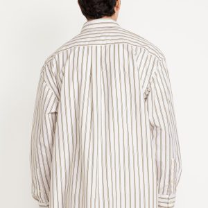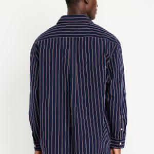 Oversized Poplin Shirt: spread collar, long sleeves, buttoned cuffs, full-button front, striped print, #781618