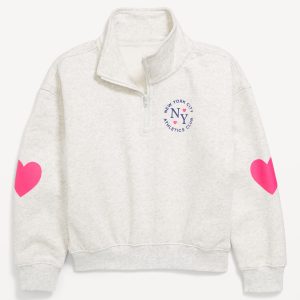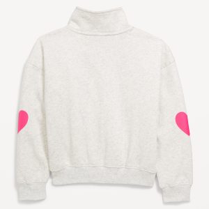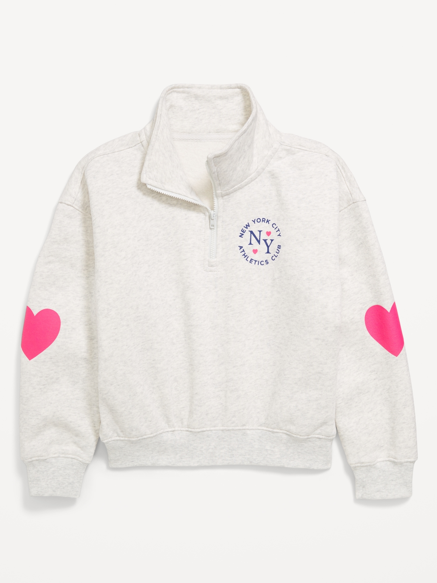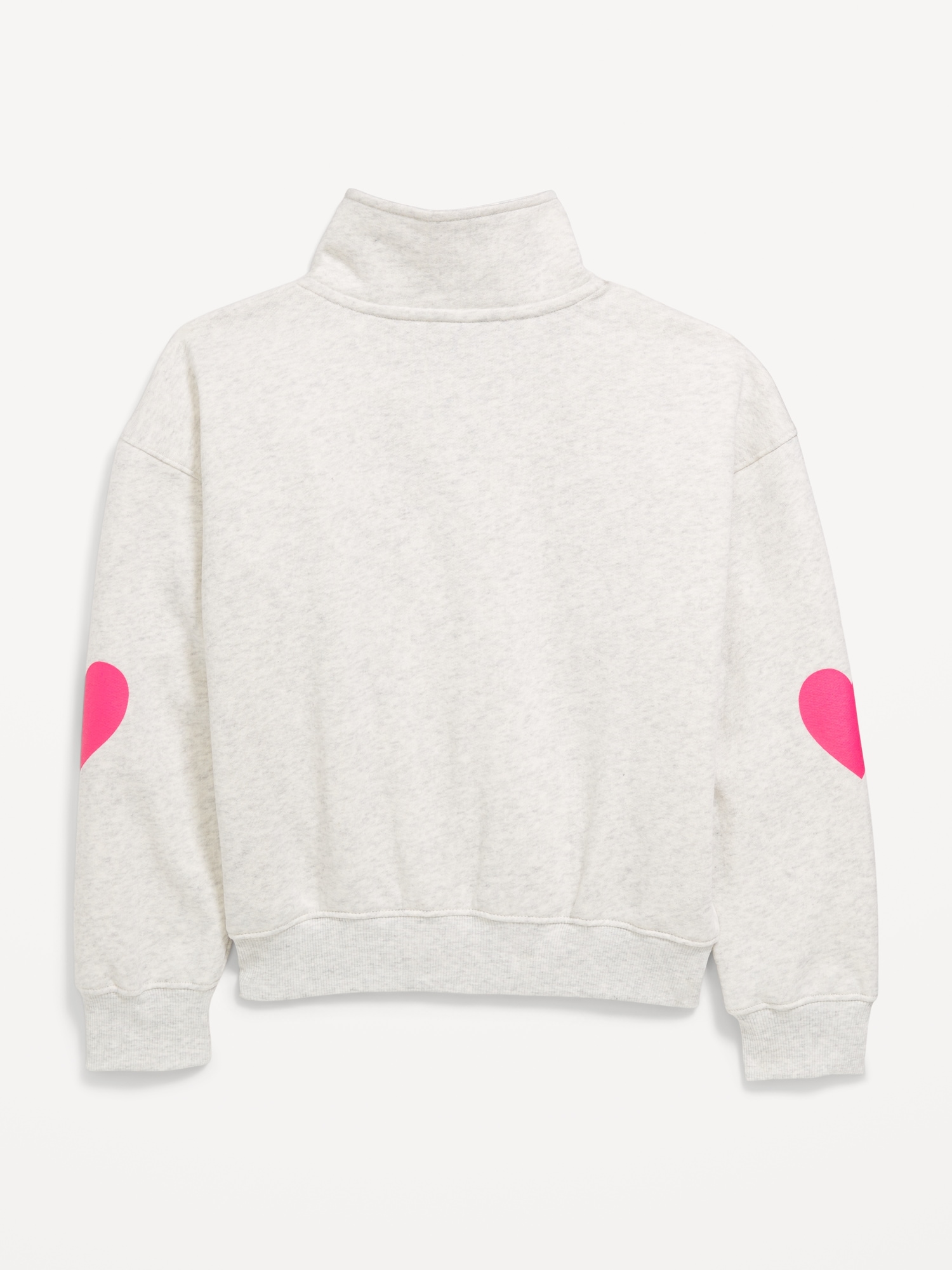 Oversized Quarter-Zip Sweatshirt for Girls: spread collar, long sleeves, drop shoulders, quarter zip front, banded hem, all-over pattern or graphic, #759538