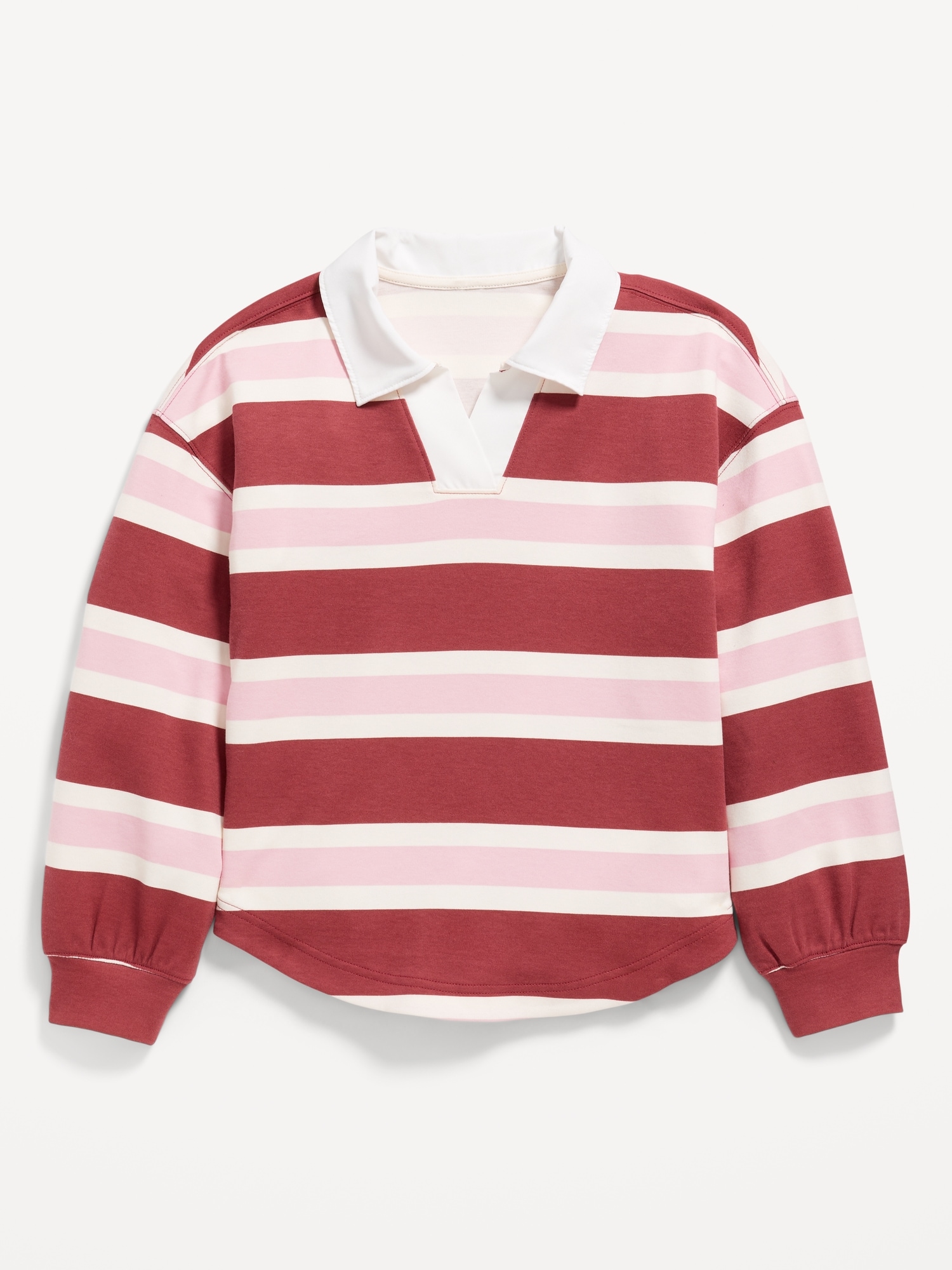 Oversized Rugby Polo Shirt for Girls: pointed collar, v neck, long wide sleeves, drop shoulders, rounded hem, #789714
