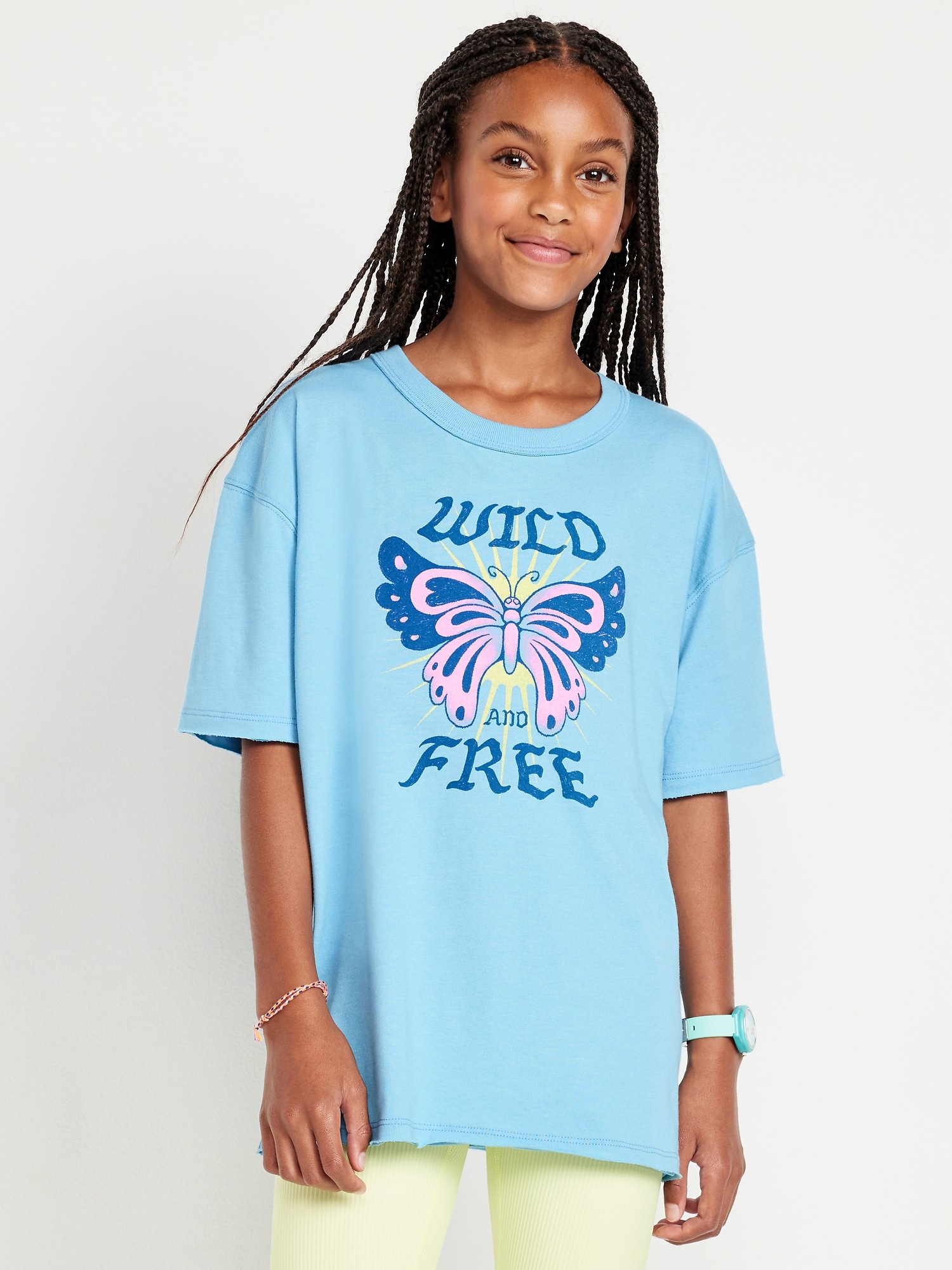 Oversized Short-Sleeve Graphic Raw-Edge T-Shirt for Girls
