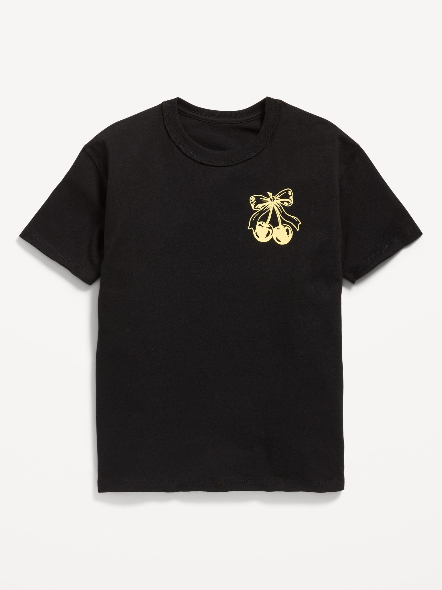 Oversized Short-Sleeve Logo-Graphic Raw-Edge T-Shirt for Girls: crew neck, short sleeves, drop shoulders, logo graphic, raw-edge hem, available exclusively online and at old navy outlet stores, #808557