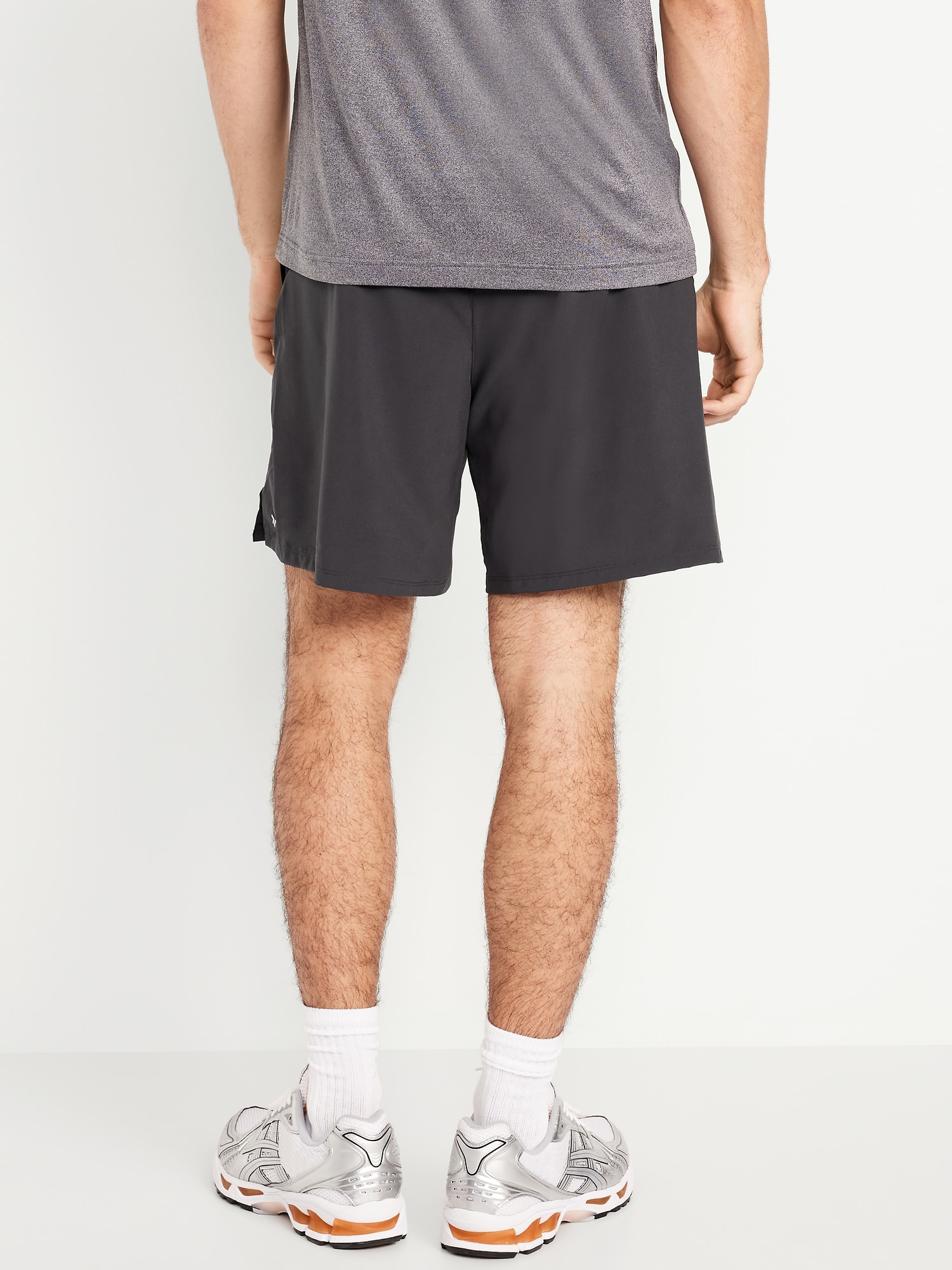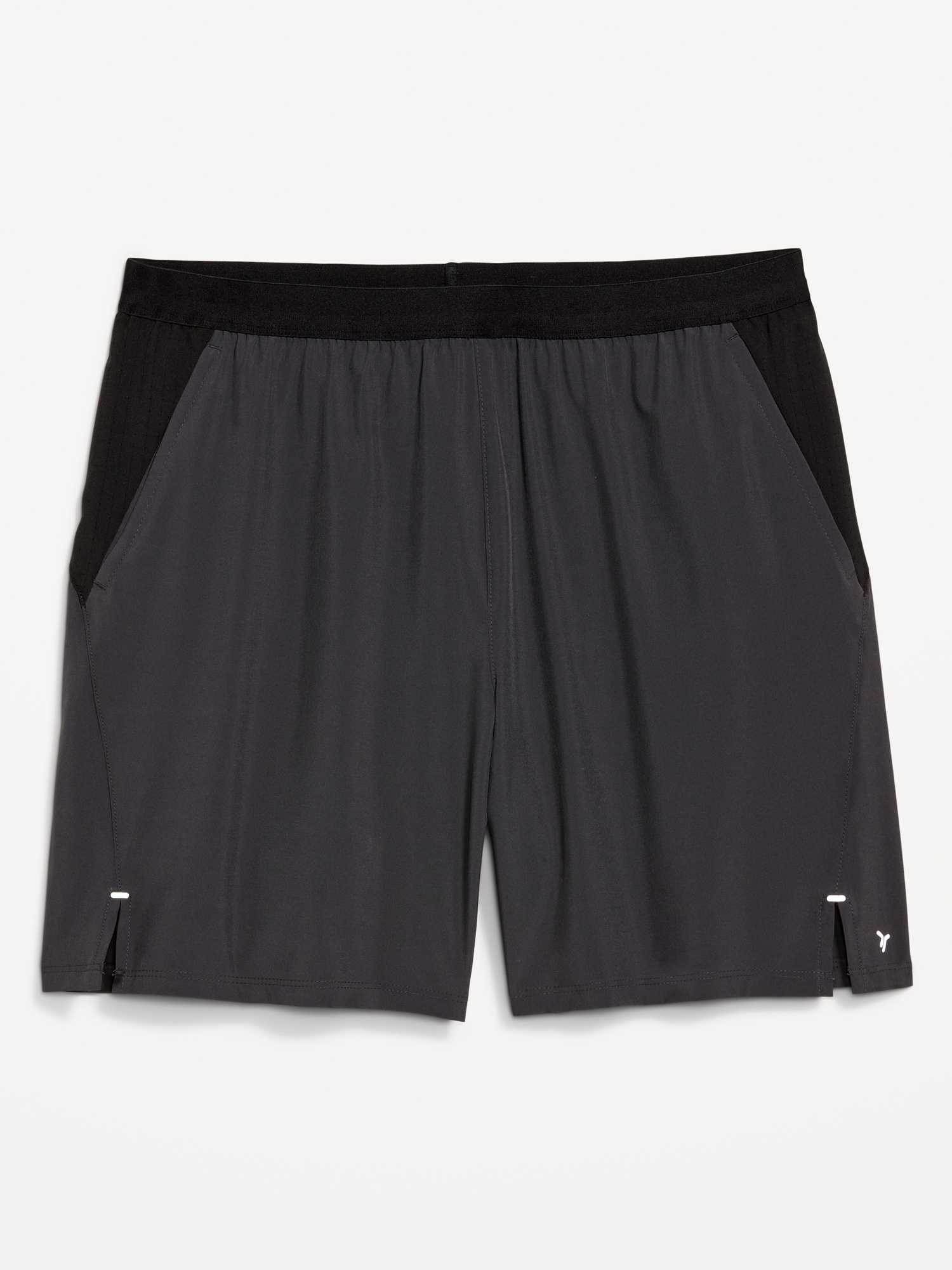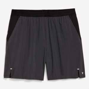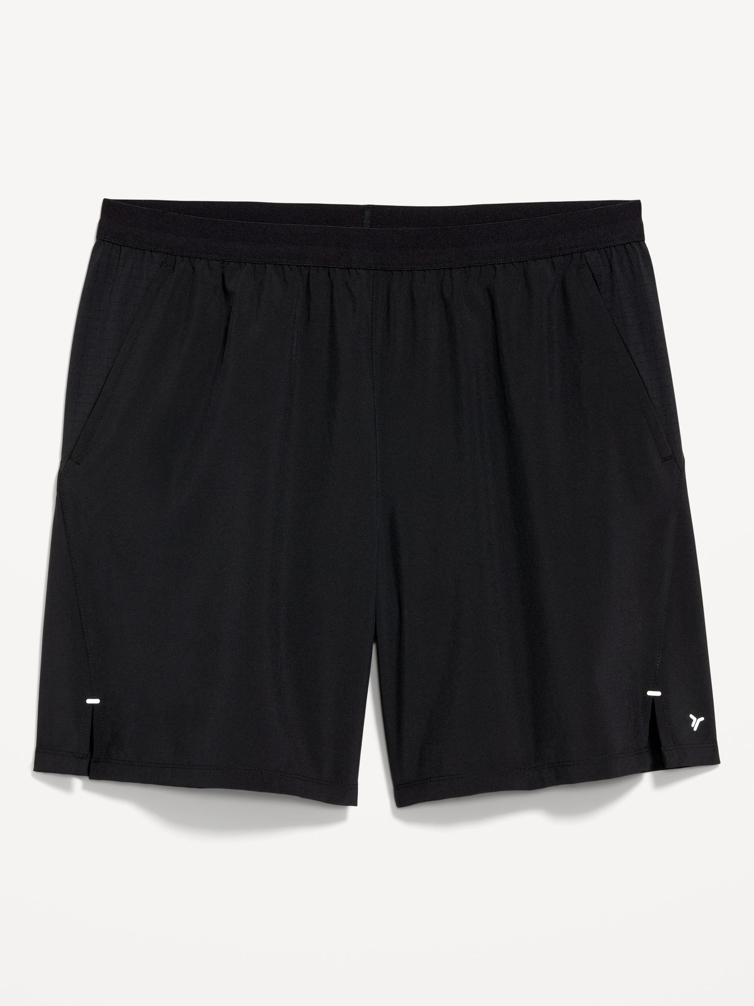 Performance Vent Run Shorts — 7-inch inseam: elastic-drawstring waistband, hidden back pocket at waist, diagonal hip pockets, vented sides, built-in briefs, breathable, quick dry, four-way stretch, #693436