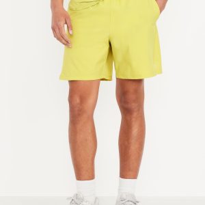 Performance Vent Run Shorts — 7-inch inseam: elastic-drawstring waistband, hidden back pocket at waist, diagonal hip pockets, vented sides, built-in briefs, breathable, quick dry, four-way stretch, #693436