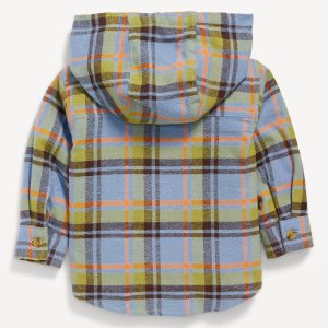 Plaid Hooded Shacket for Baby: built-in hood, long sleeves, patch pockets at chest, full length button placket, round hem, online exclusive, #801525