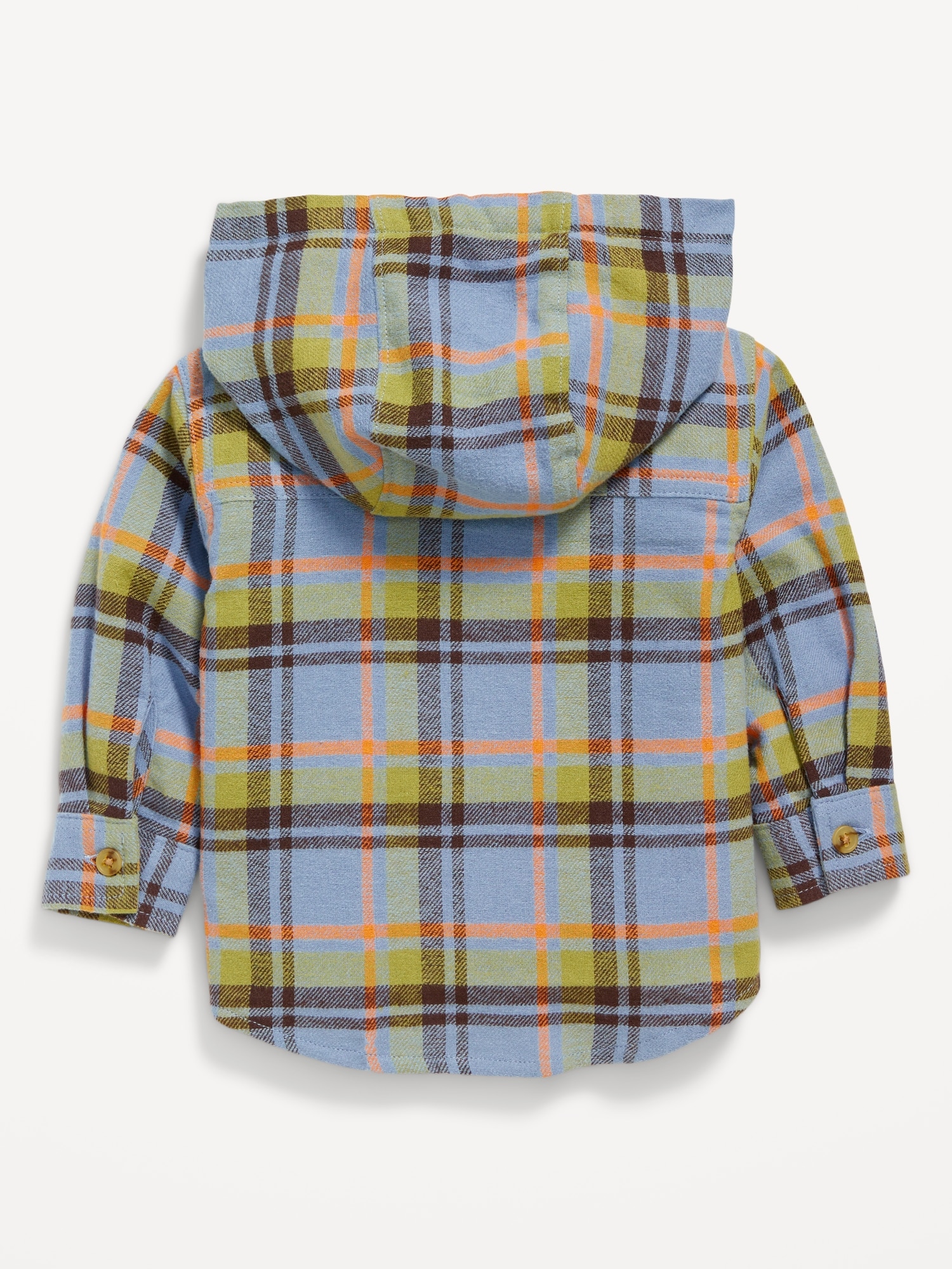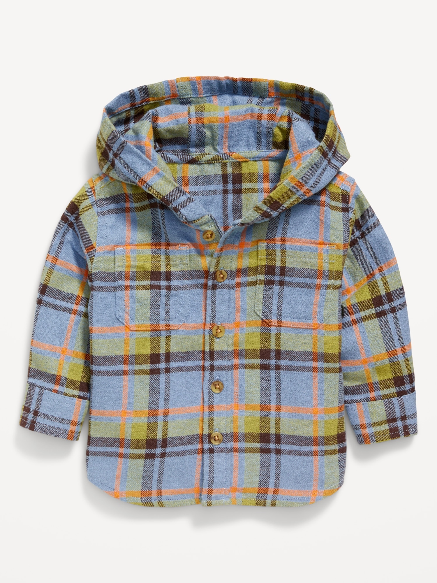 Plaid Hooded Shacket for Baby: built-in hood, long sleeves, patch pockets at chest, full length button placket, round hem, online exclusive, #801525