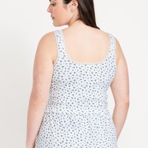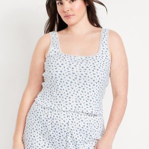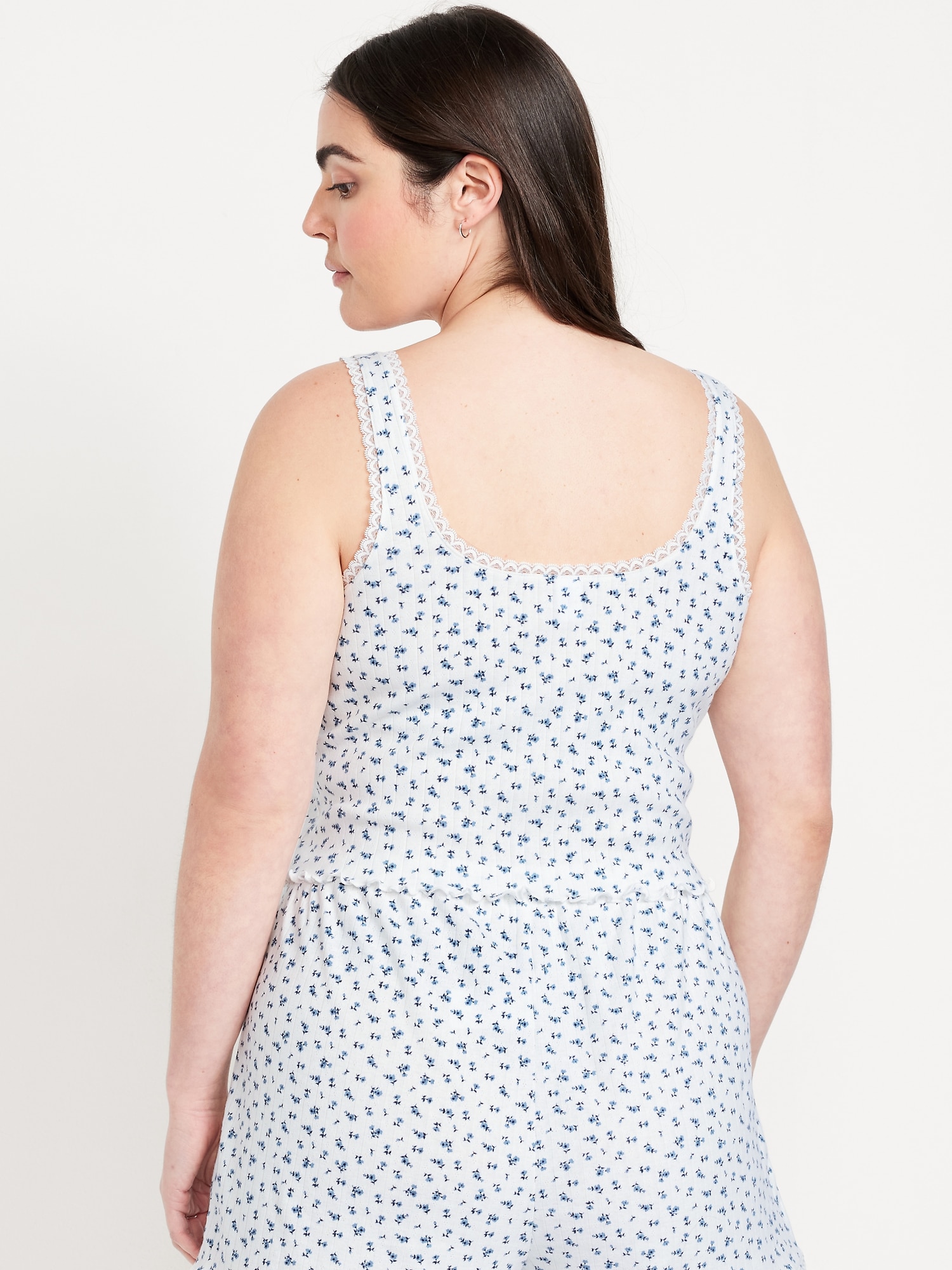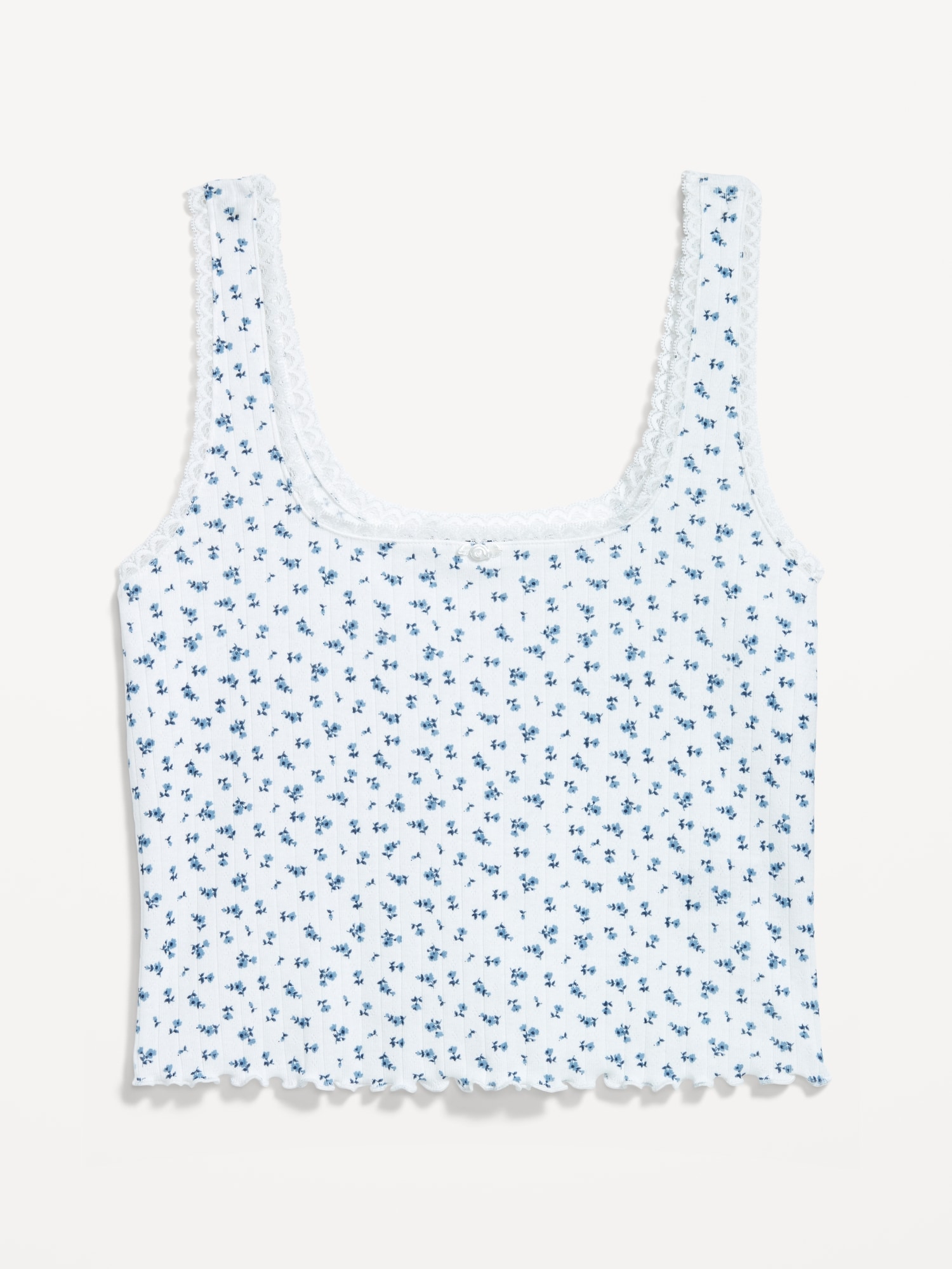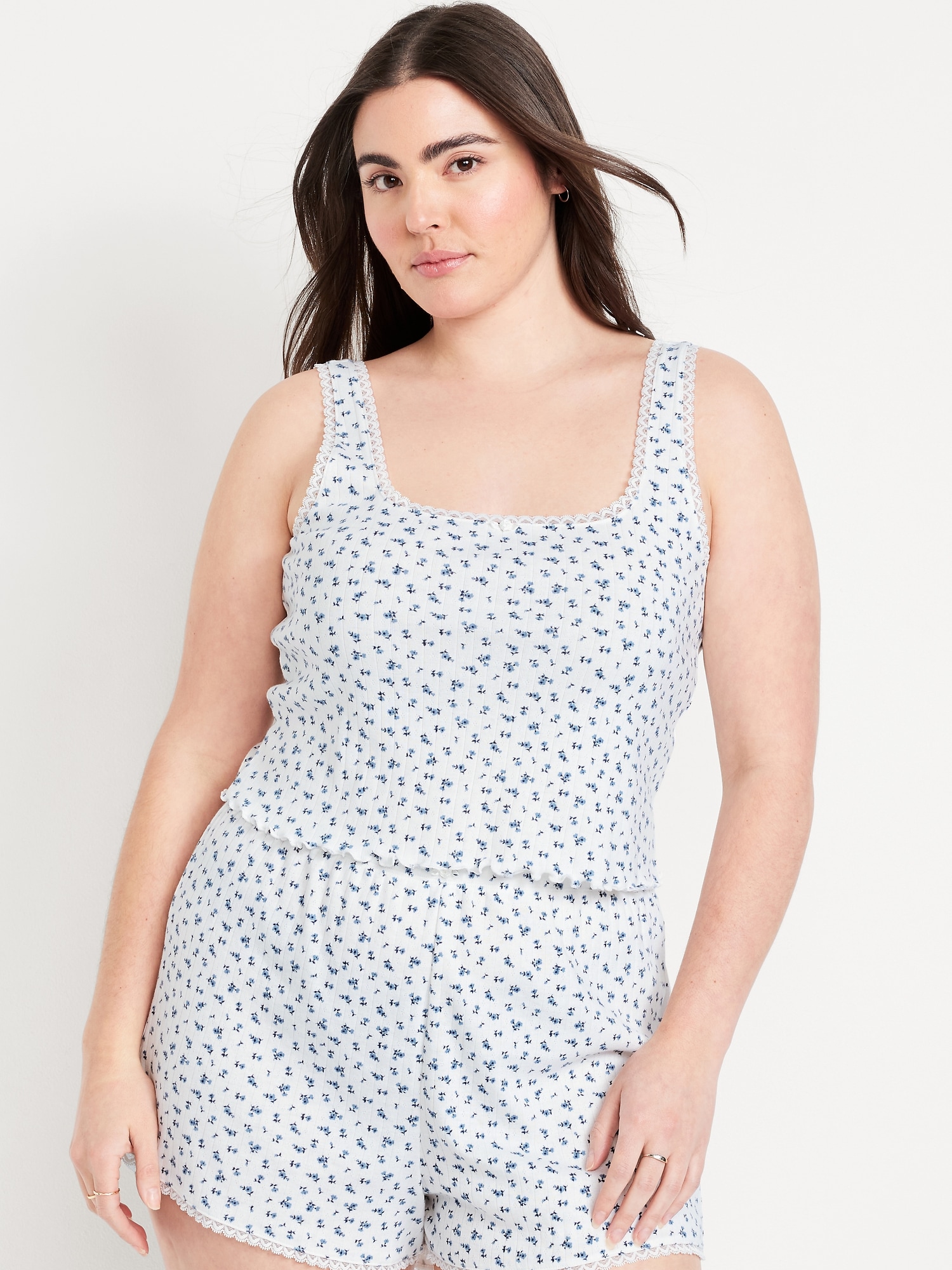Pointelle Cropped Pajama Tank Top: ruffle-trim scoop neck, wide straps, lettuce-edge hem, #707474