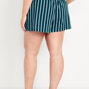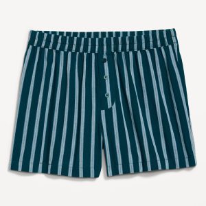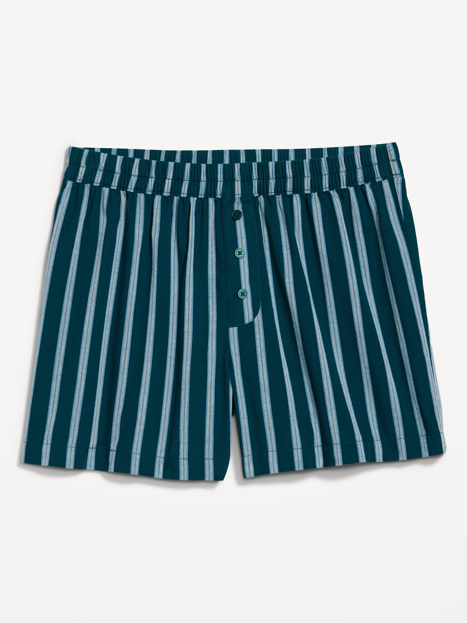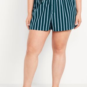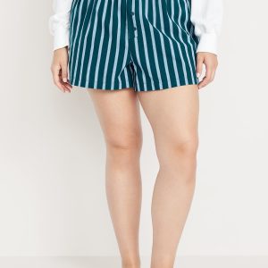 Poplin Boxer Pajama Shorts: elastic waistband, decorative button fly, plaid print, #798497