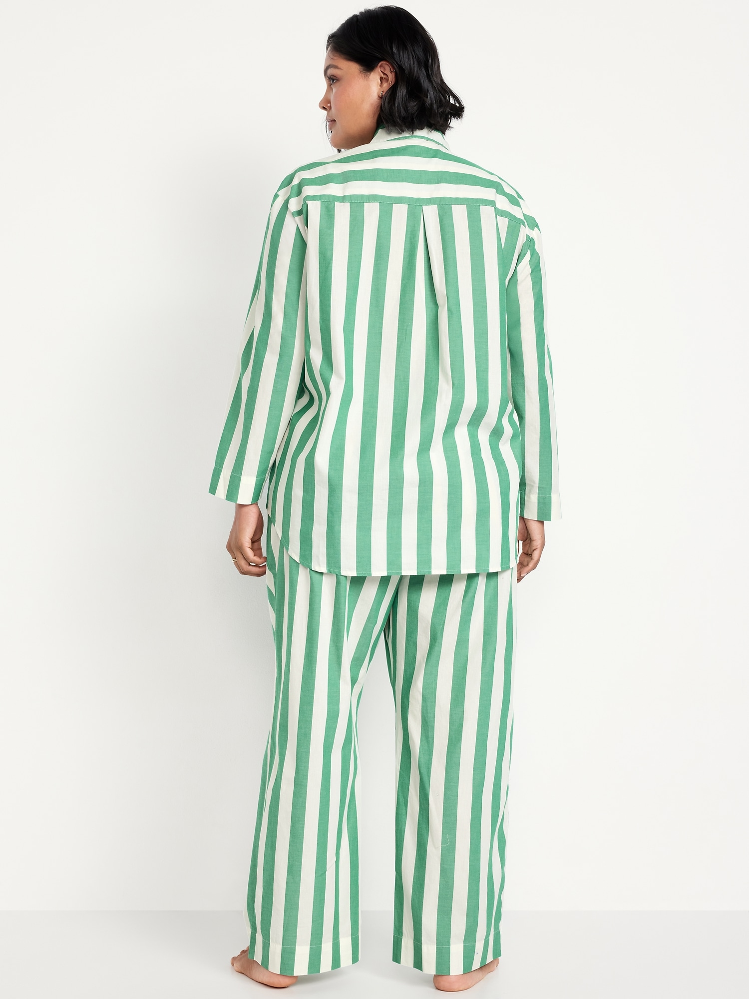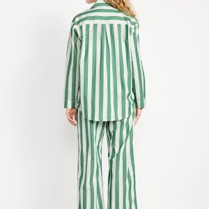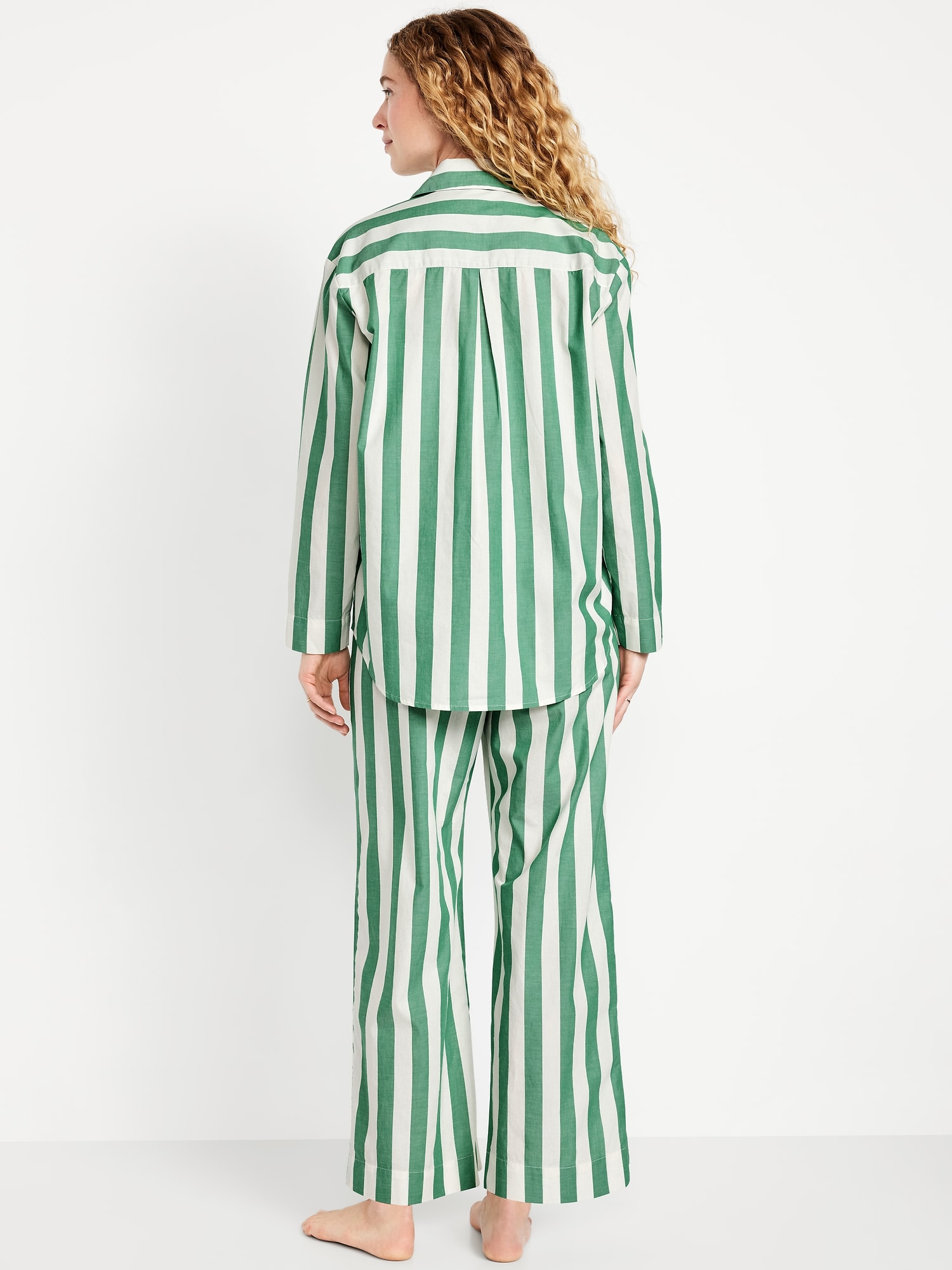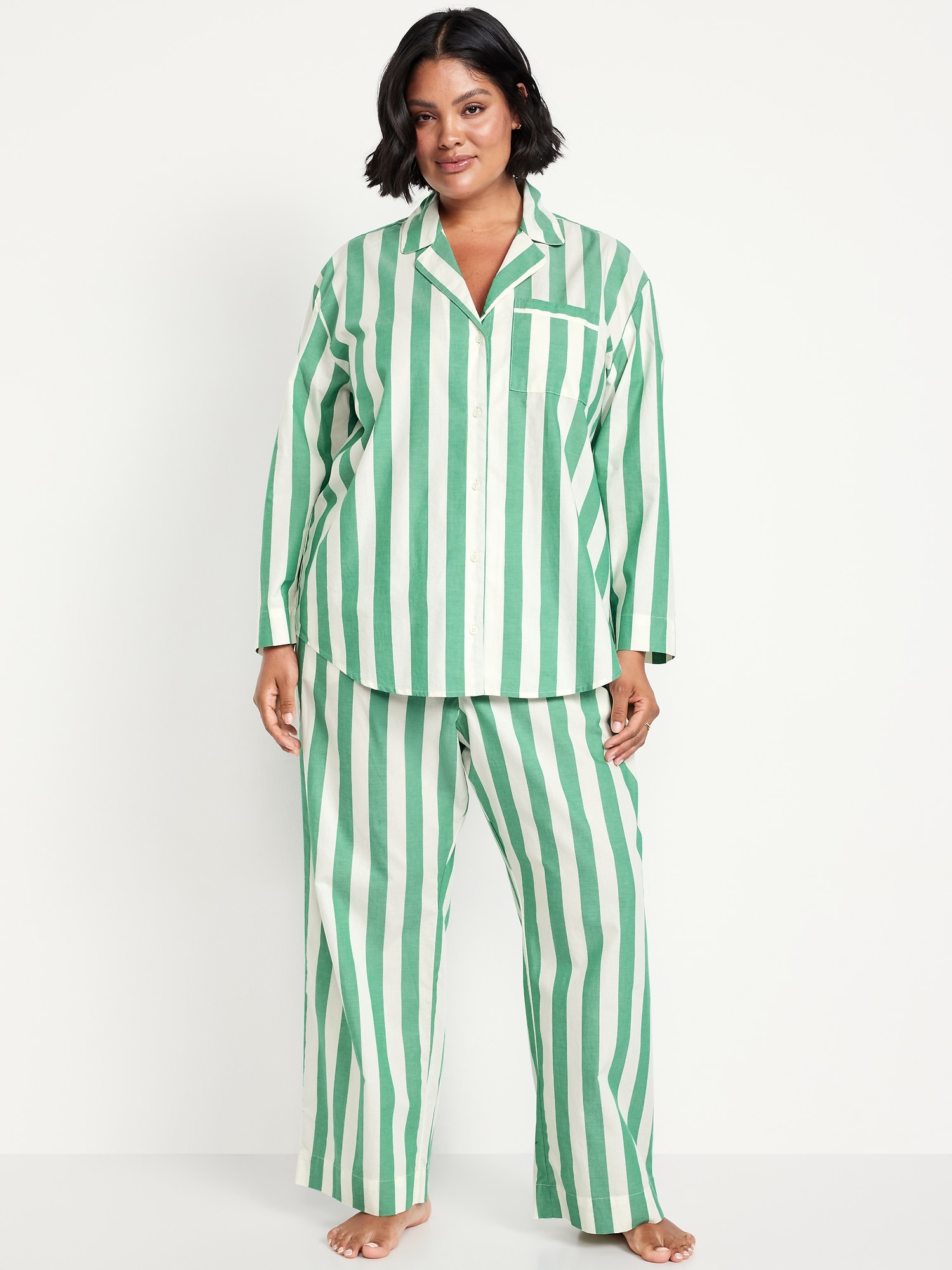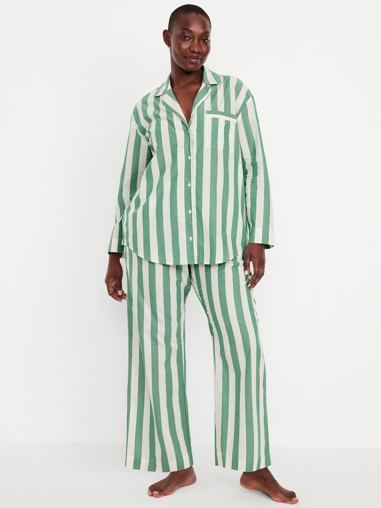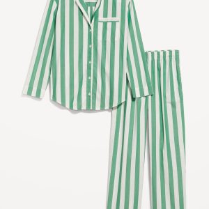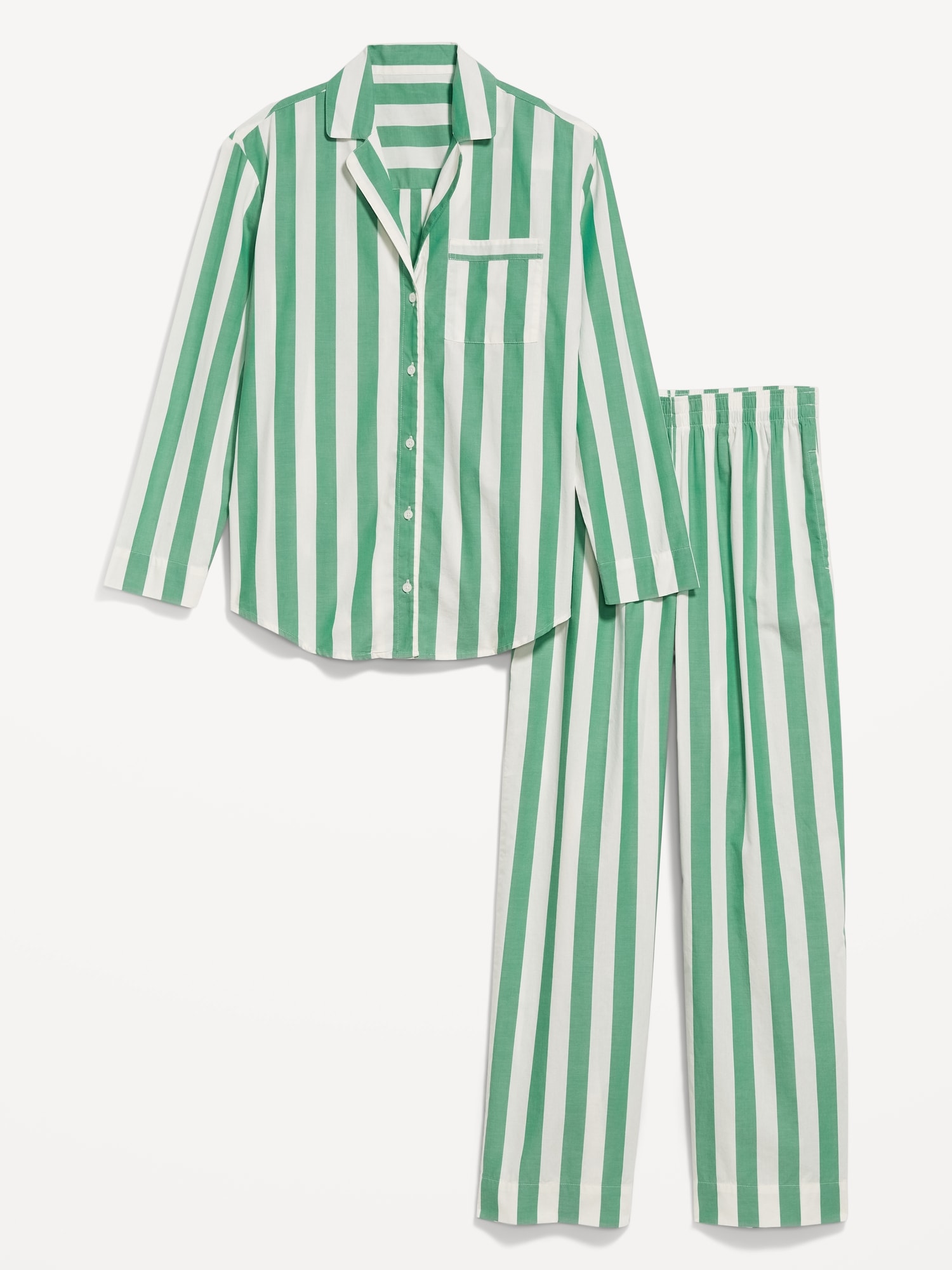 Poplin Pajama Pant Set: Crisp, breathable cotton that’s classic for a reason.set includes pajama shirt and matching bottoms, spread collar, long sleeves, buttoned front, patch chest pocket, elastic-waist pajama pants, decorative button fly, on-seam pockets, all-over print varies, #889047