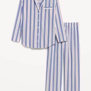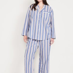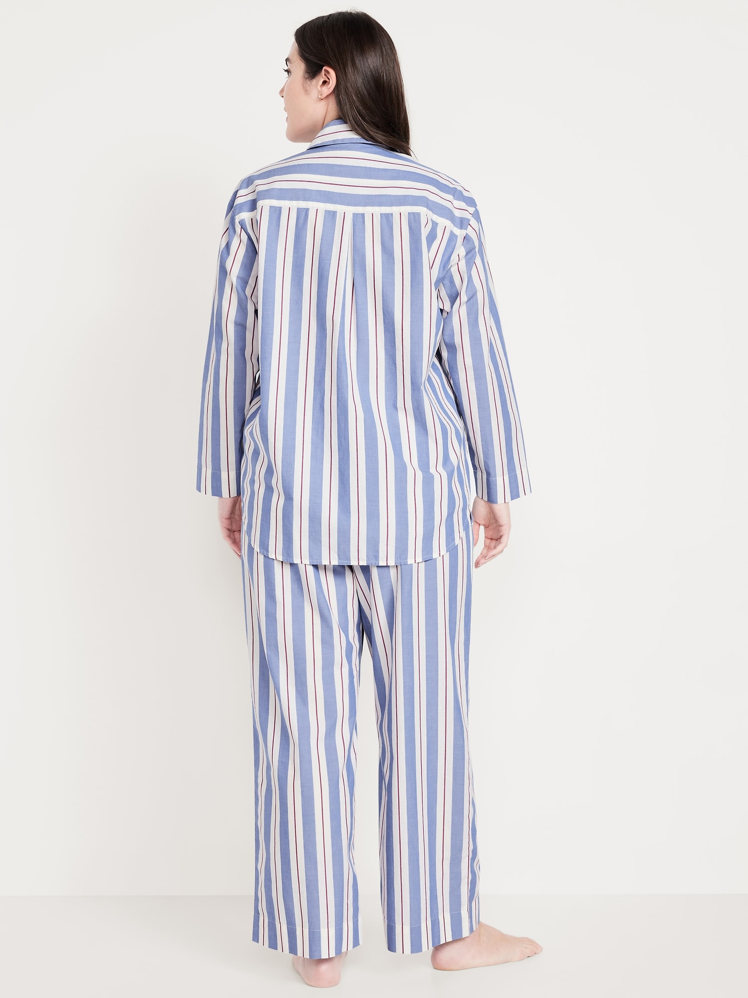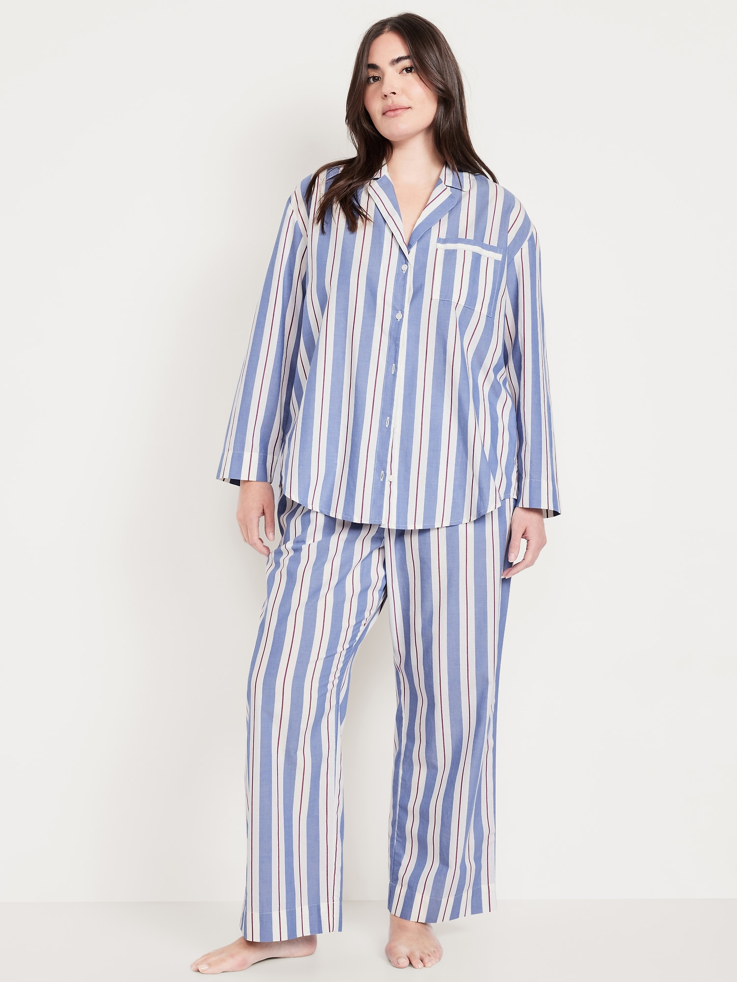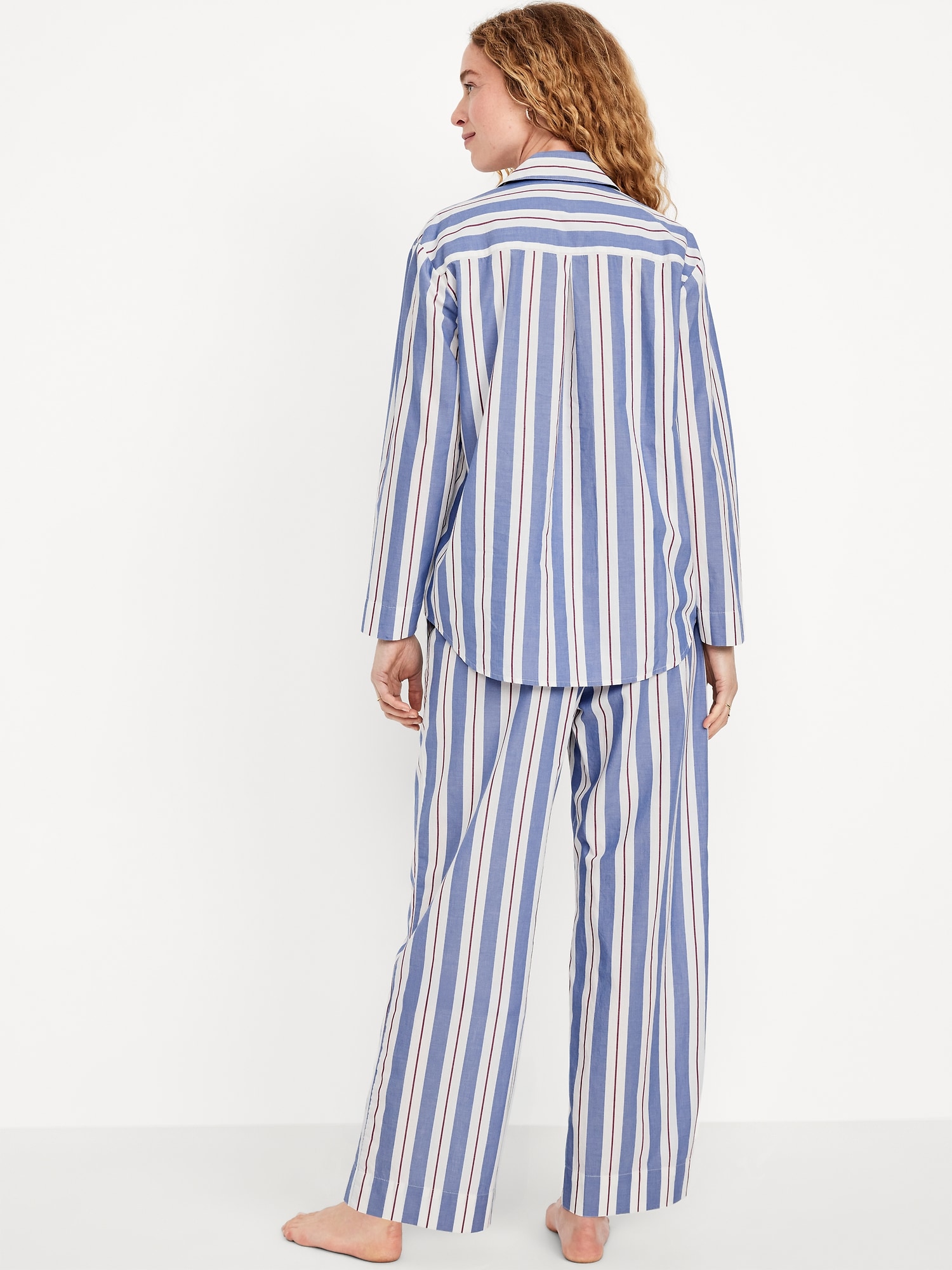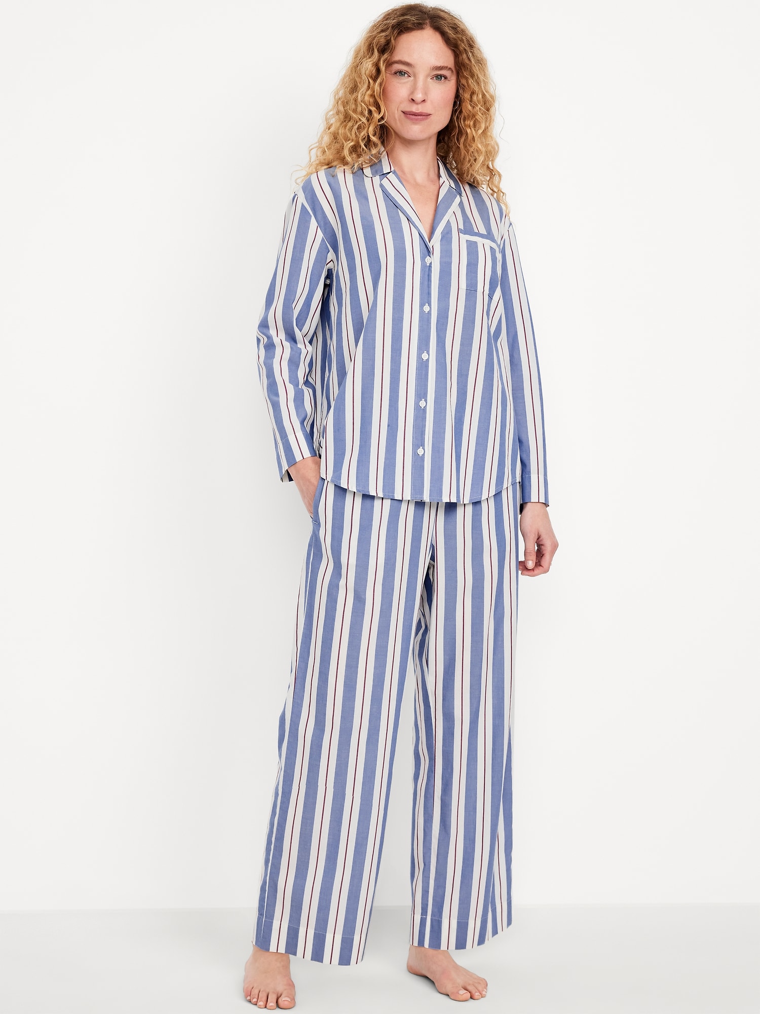 Poplin Pajama Pant Set: Crisp, breathable cotton that’s classic for a reason.set includes pajama shirt and matching bottoms, spread collar, long sleeves, buttoned front, patch chest pocket, elastic-waist pajama pants, decorative button fly, on-seam pockets, all-over print varies, #889047