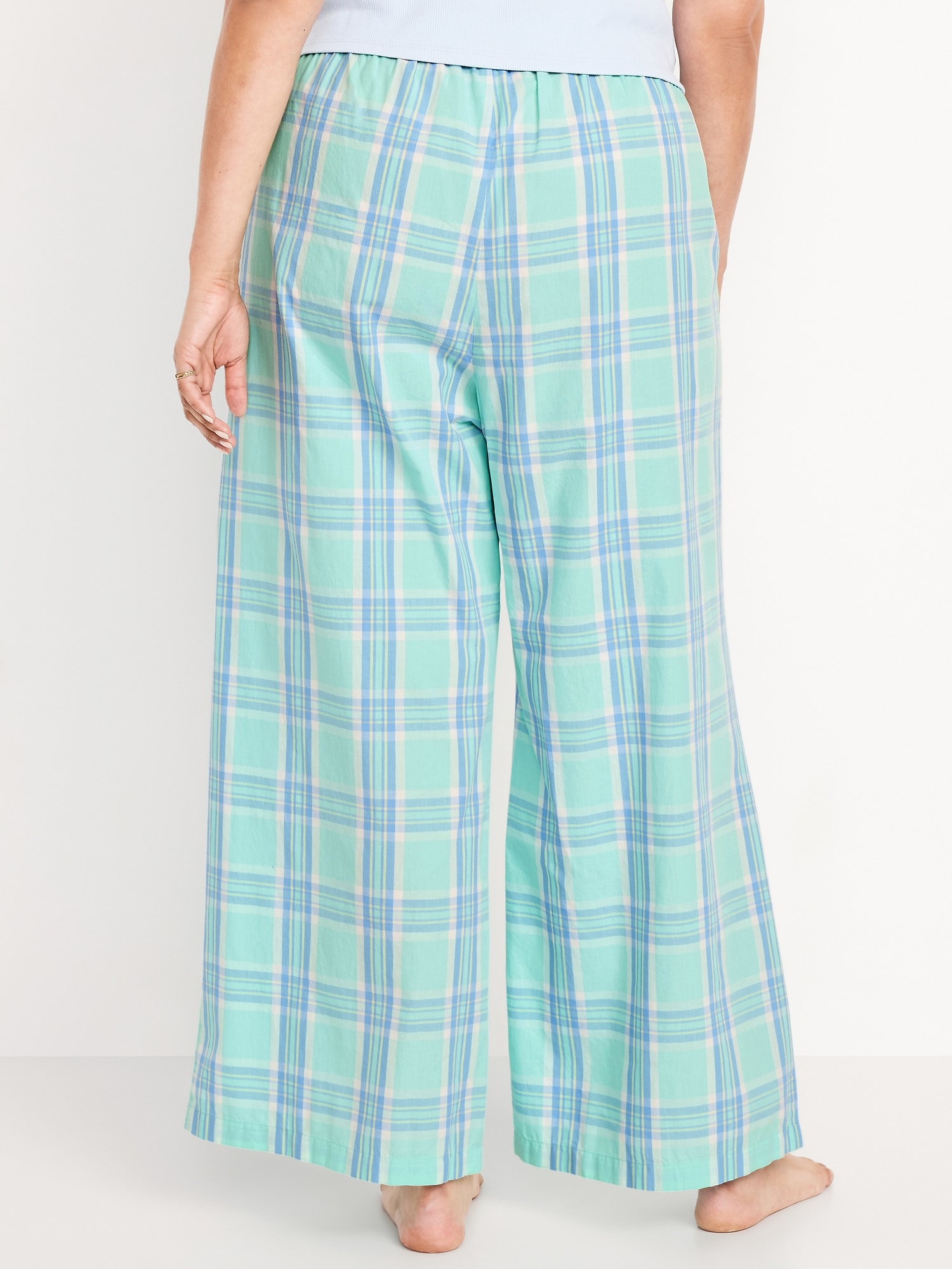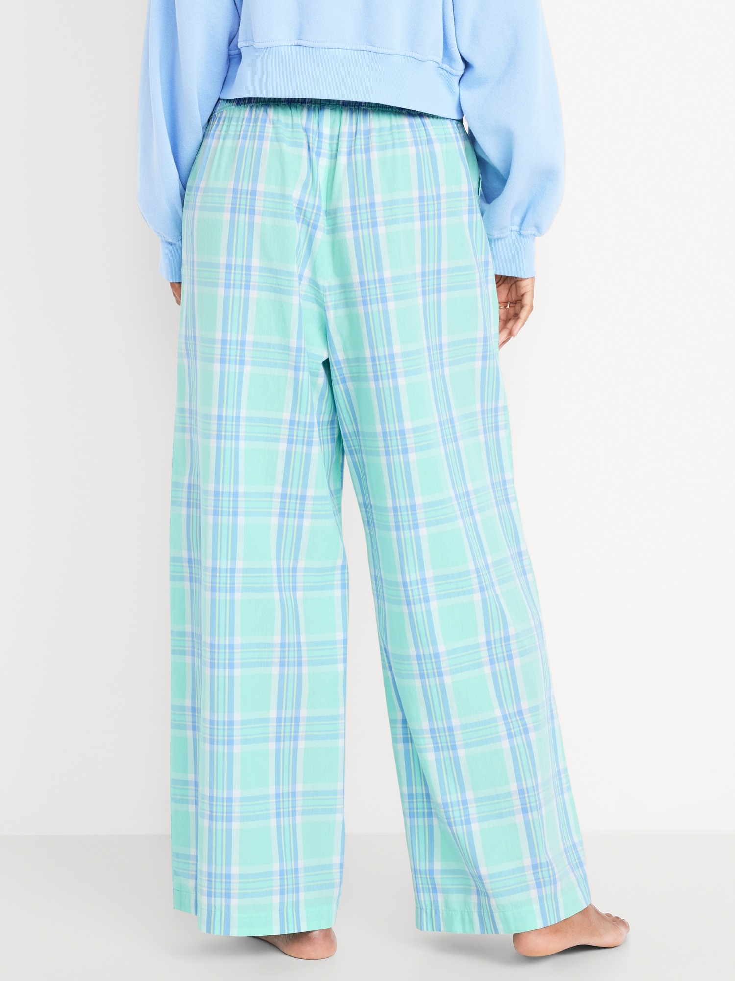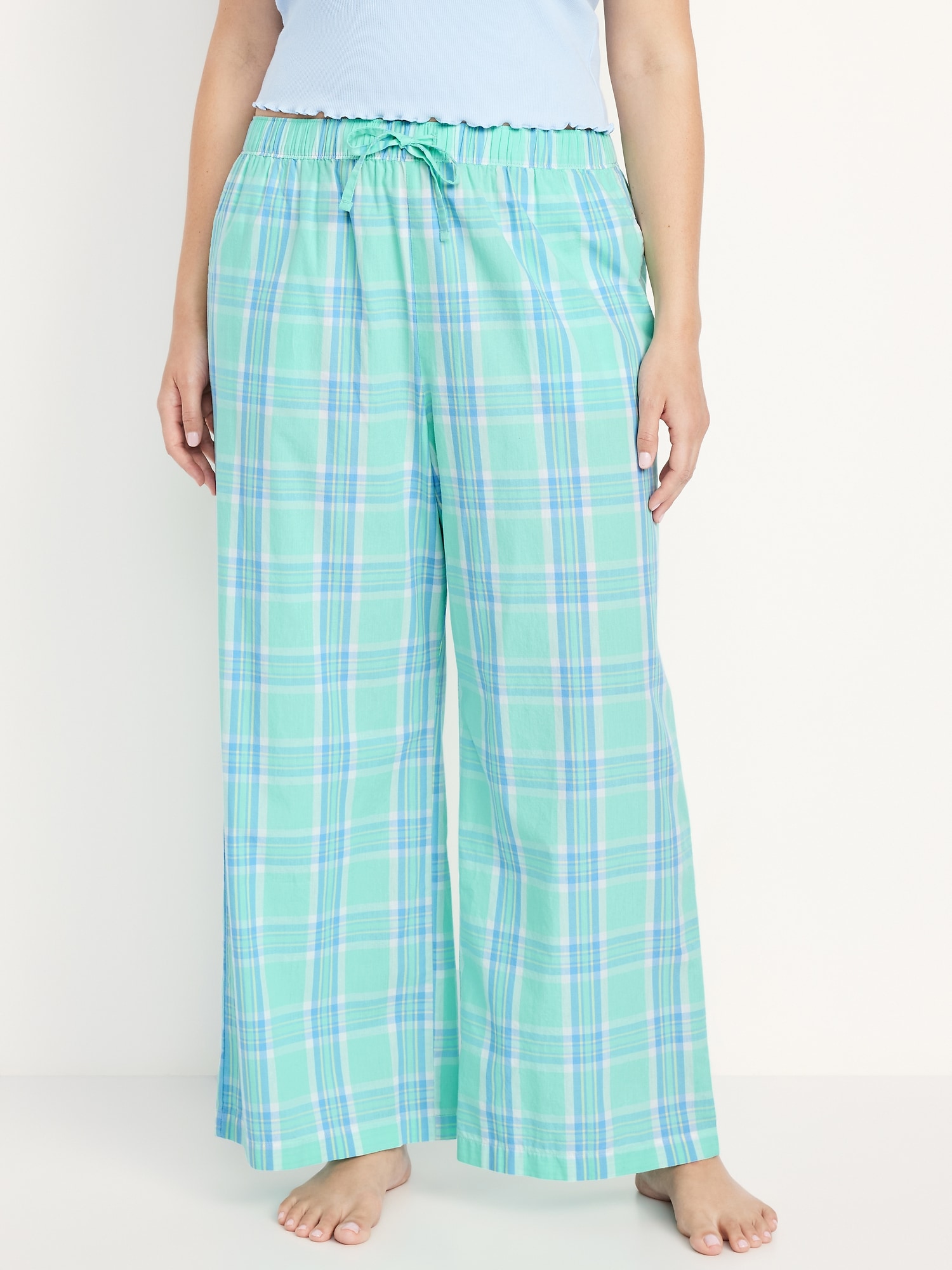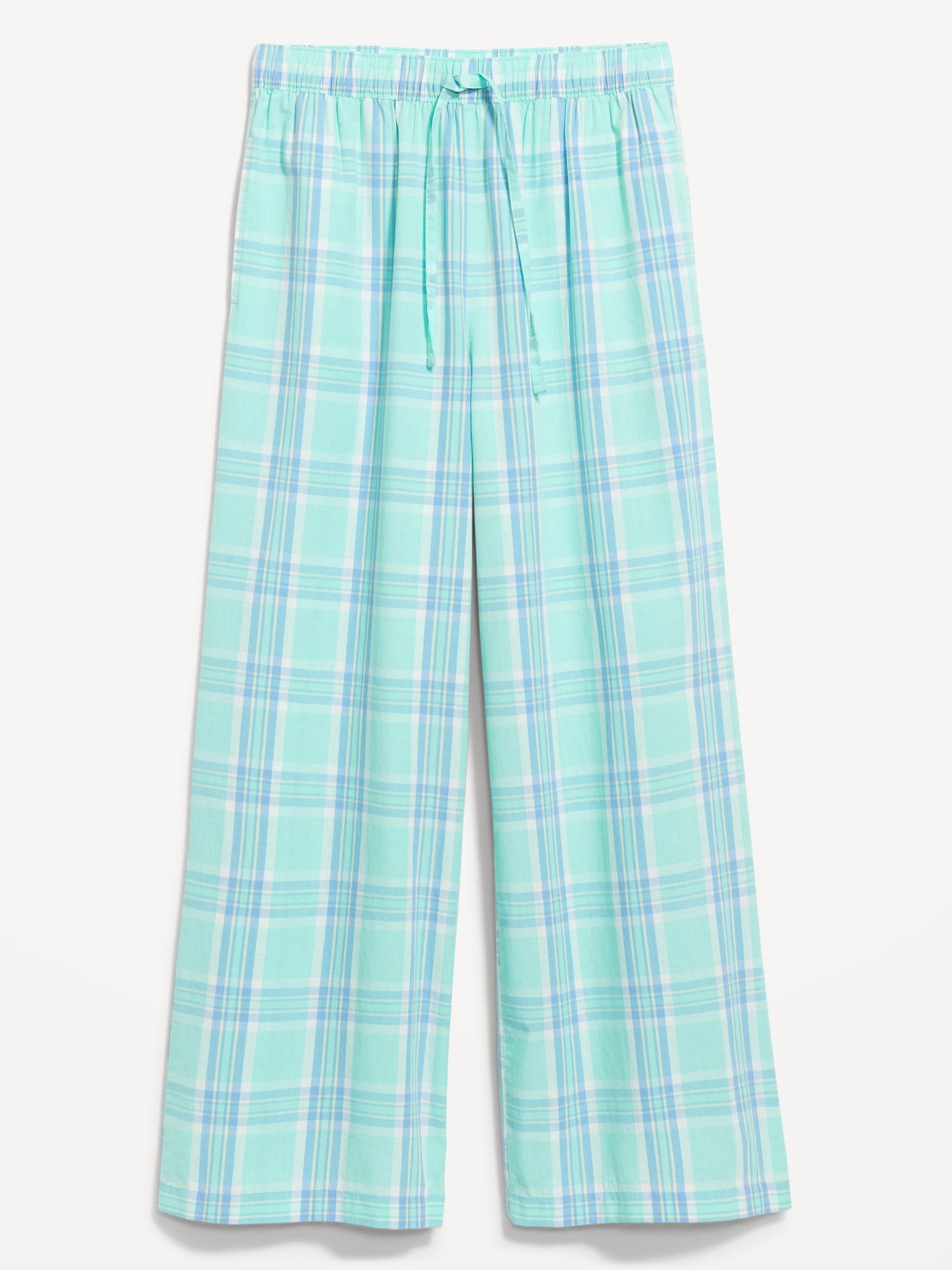 Poplin Wide-Leg Pajama Pants: Crisp, breathable cotton that’s classic for a reason.elastic-drawstring waistband, on-seam side pockets, plaid print, #798467