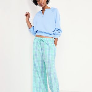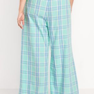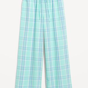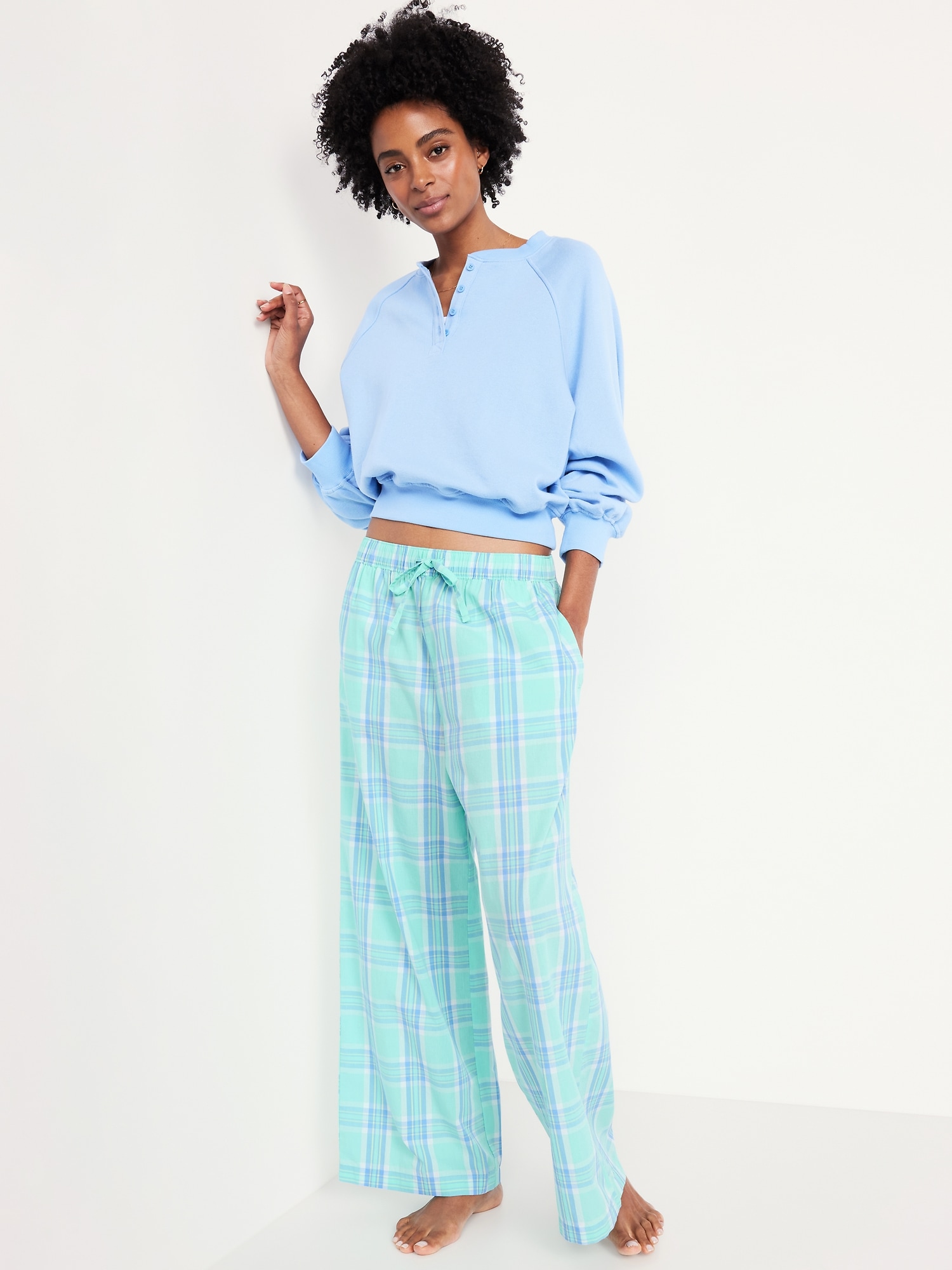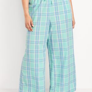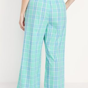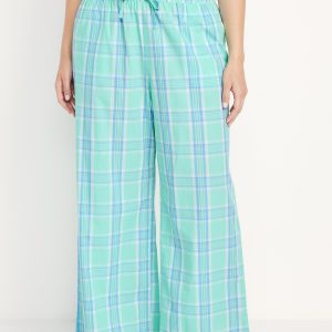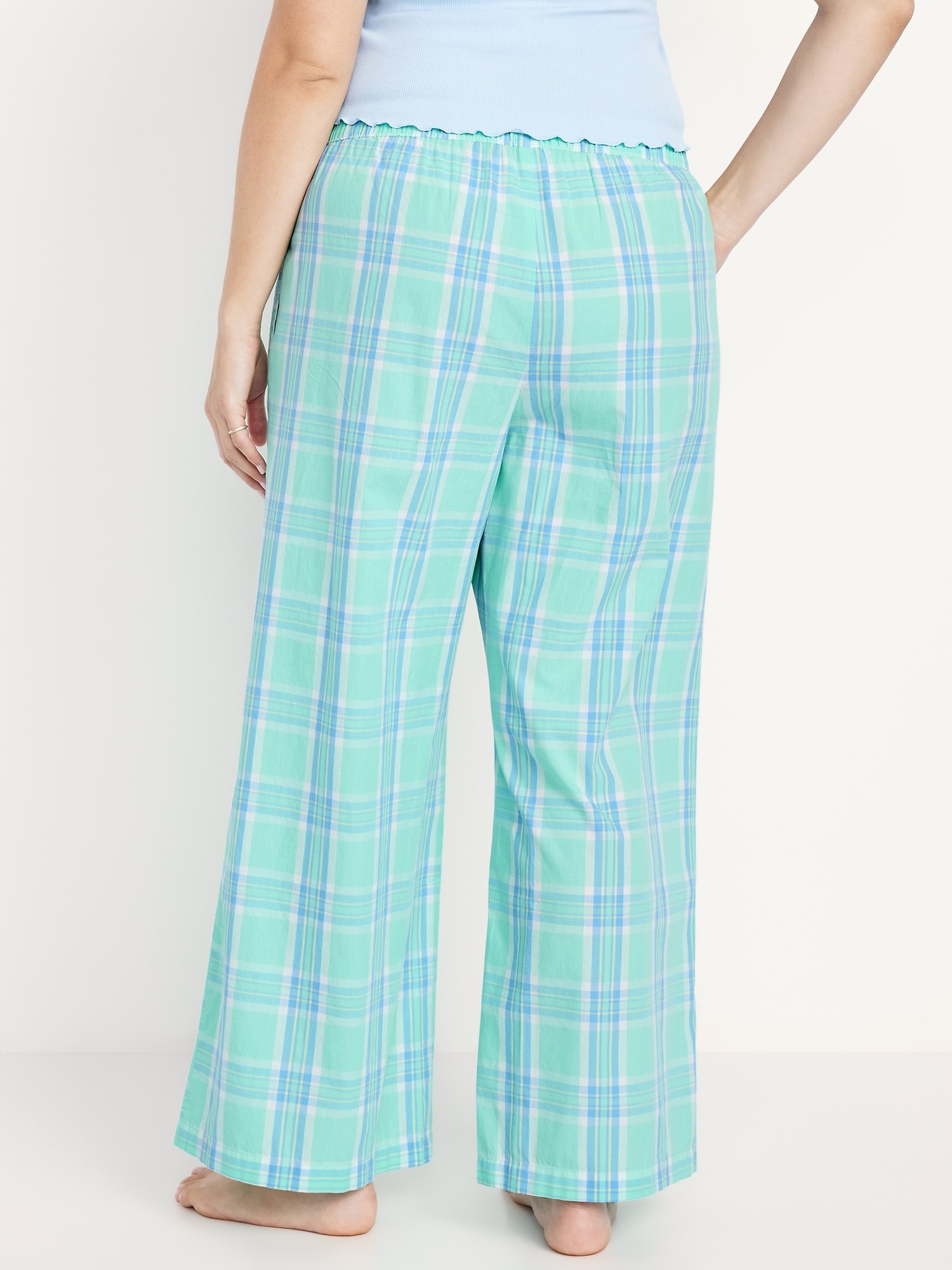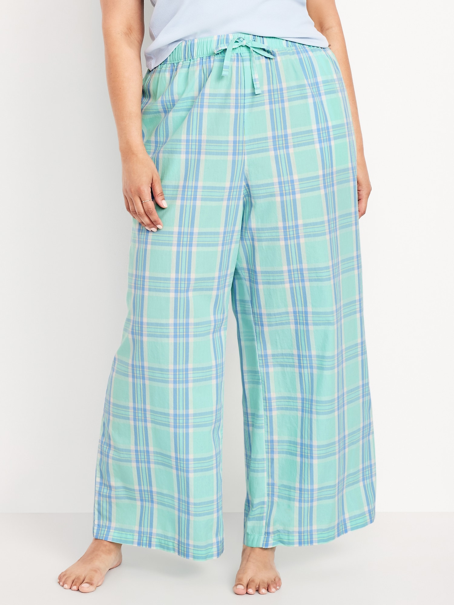 Poplin Wide-Leg Pajama Pants: Crisp, breathable cotton that’s classic for a reason.elastic-drawstring waistband, on-seam side pockets, plaid print, #798467