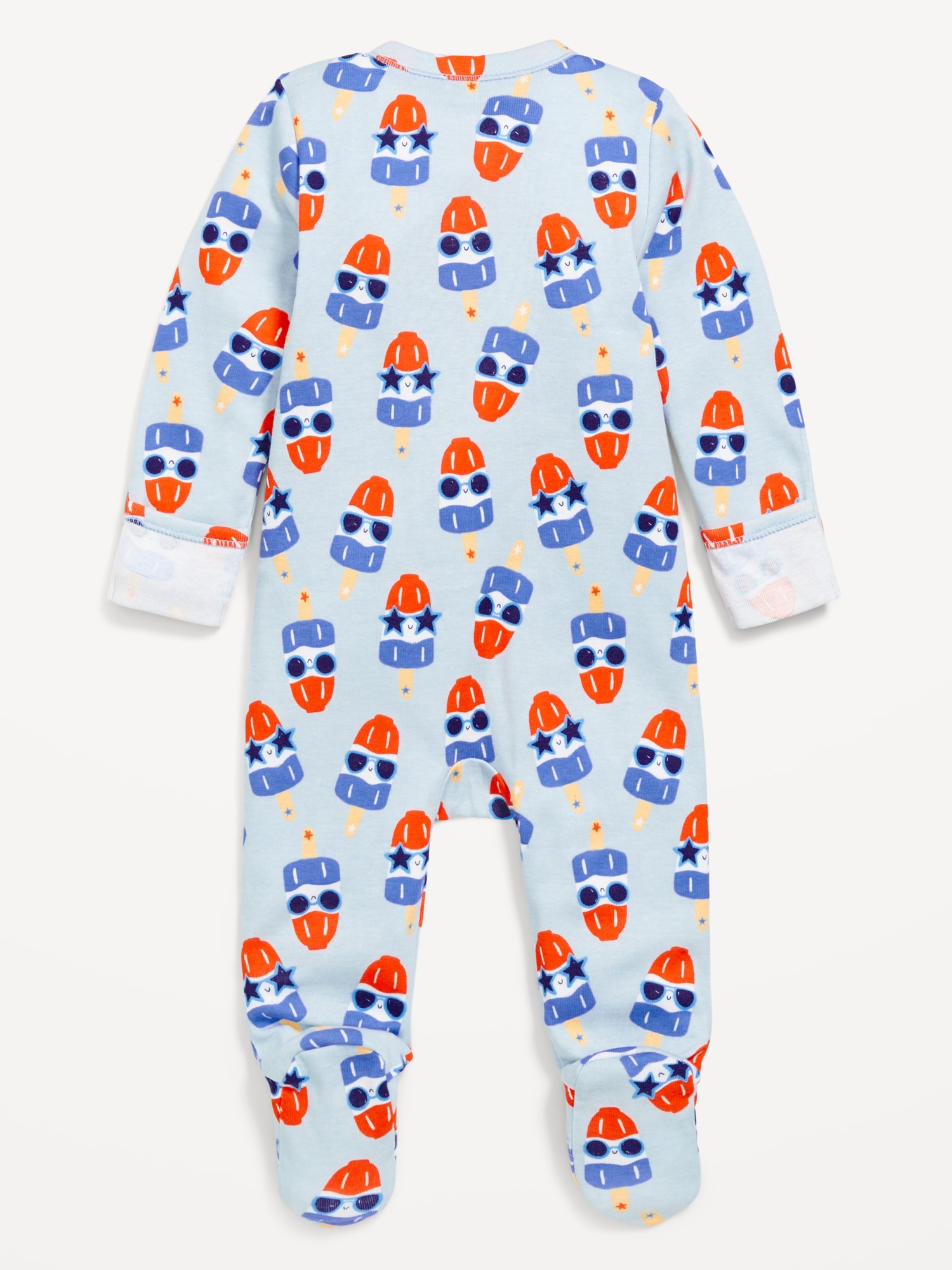Printed 2-Way-Zip Sleep & Play Footed One-Piece for Baby: rib-knit crew neck, long sleeves, fold-over mittens, reversible two-way zippersewn-in feet, #867712