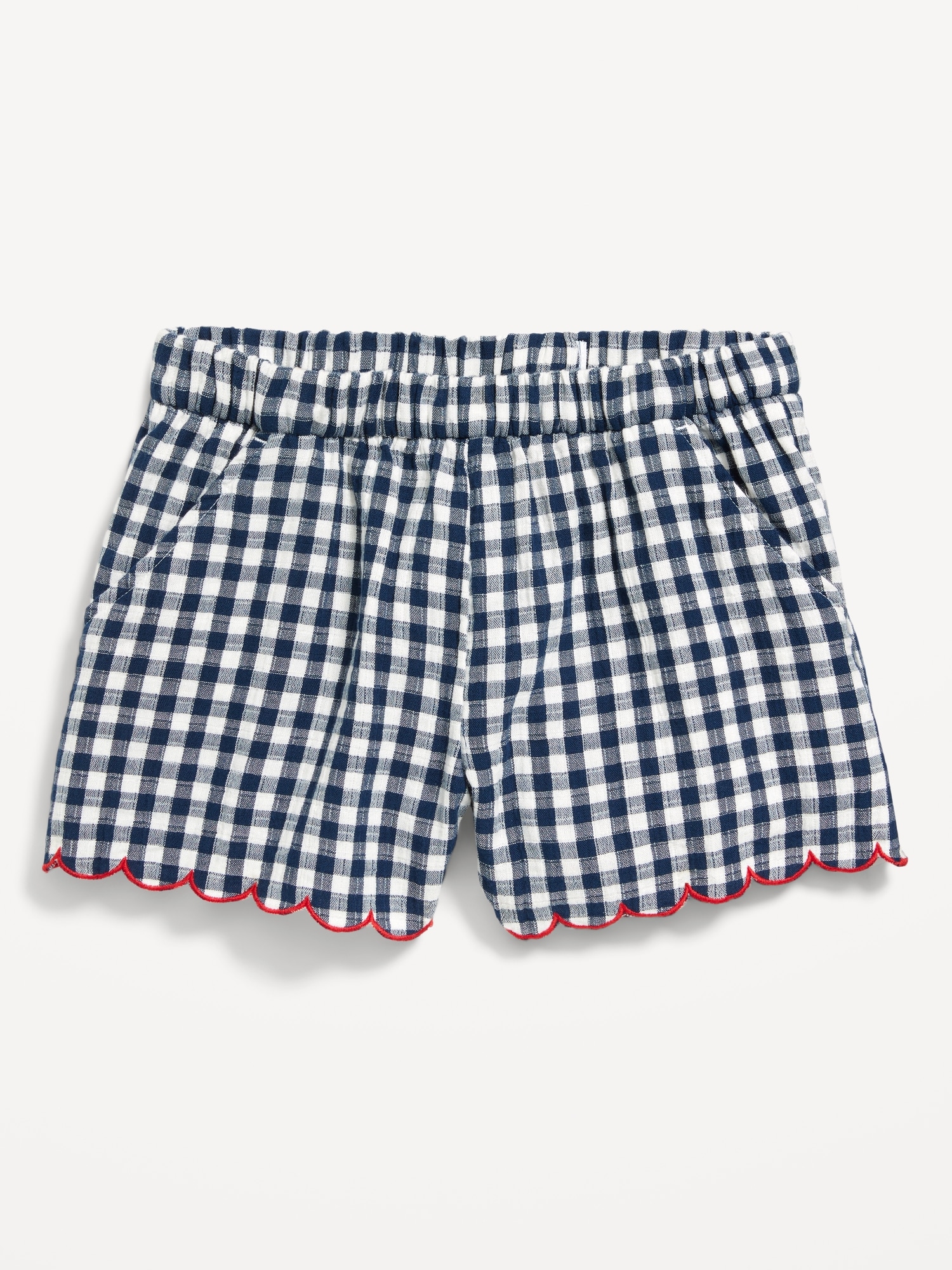 Printed Double-Weave Scallop-Trim Shorts for Girls: elasticized waistband, diagonal on-seam pockets, scallop trim, all-over print, #704711