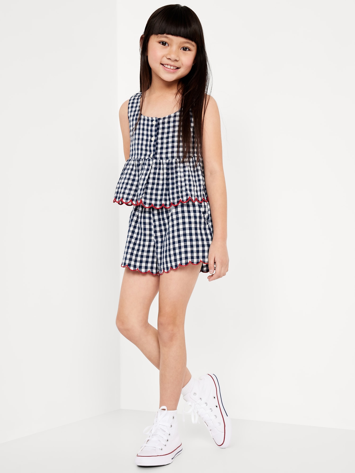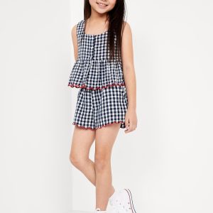 Printed Double-Weave Scallop-Trim Shorts for Girls