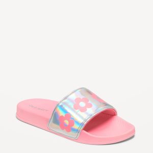 Printed Faux-Leather Pool Slide Sandals for Girls