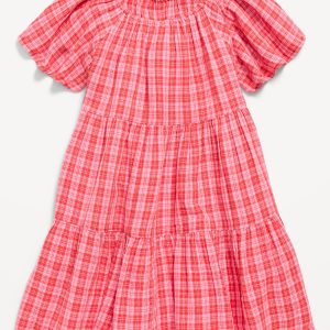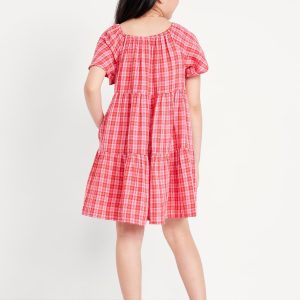 Printed Flutter-Sleeve Double-Weave Tiered Swing Dress for Girls