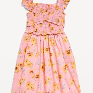 Printed Flutter-Sleeve Smocked Fit and Flare Dress for Girls