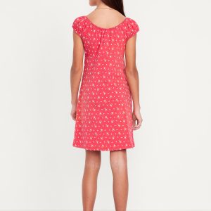 Printed Flutter-Sleeve Smocked Fit and Flare Dress for Girls: heart-shaped neckline, flutter sleeves, smocked bodice, ruffle trim along bodice and waist, full skirt, on-seam pockets, all-over print, #691063