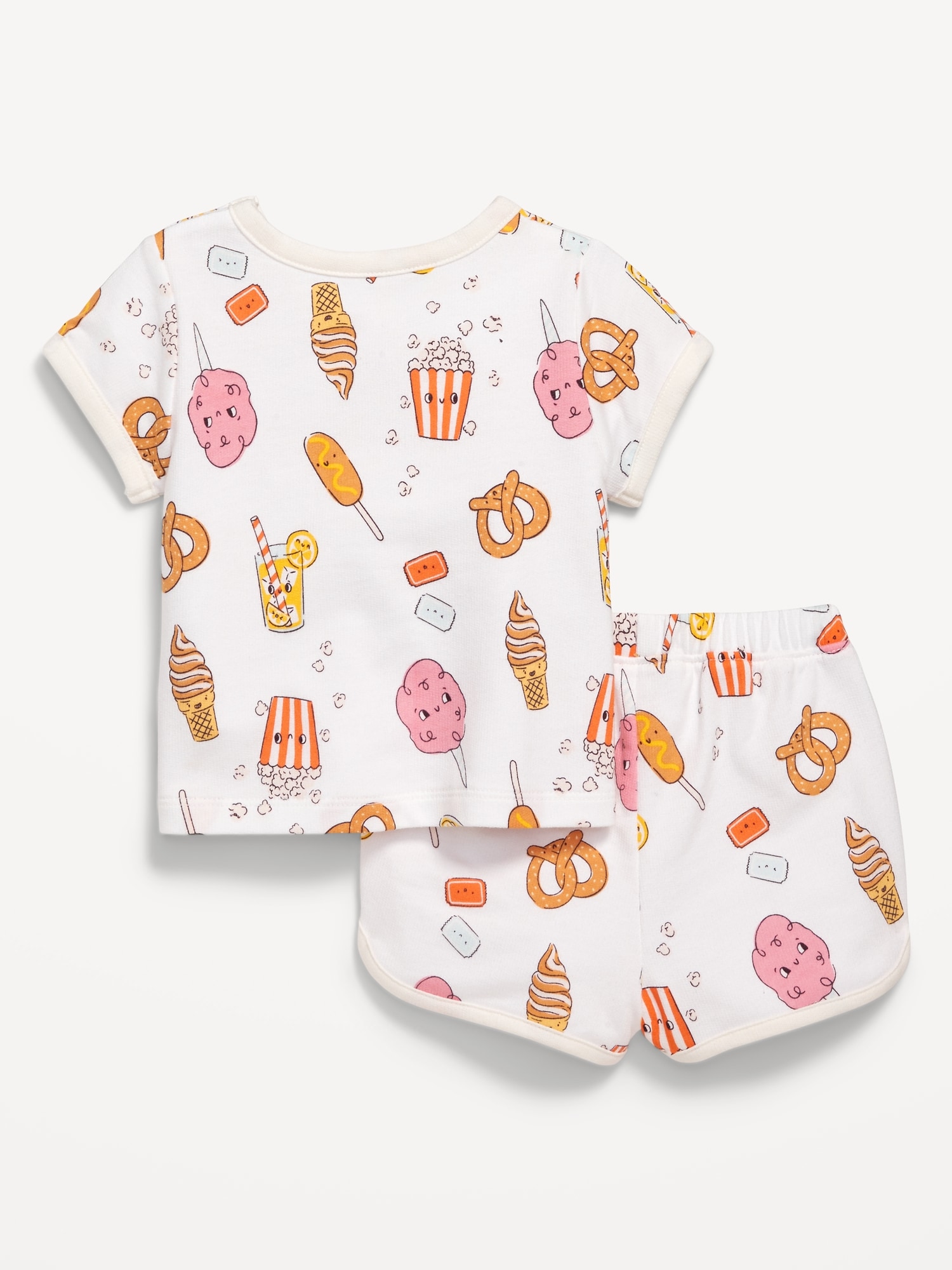 Printed French-Terry Ringer T-Shirt and Shorts Set for Baby: crew neck with buttons at shoulder, dolman sleeves, front graphic, functional elastic-drawstring waist shorts, available exclusively online and at old navy outlets, #766737