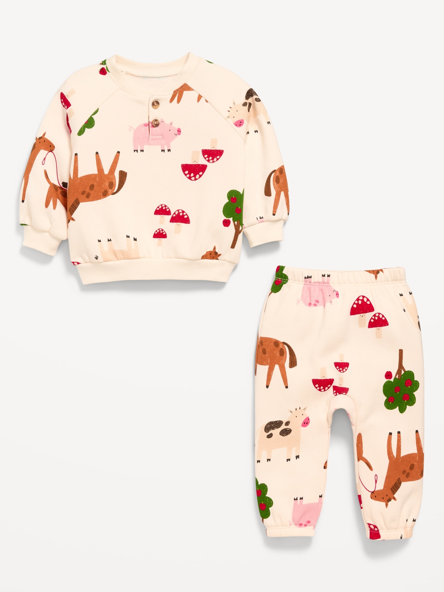 Printed Henley Sweatshirt and Sweatpants Set for Baby: crew neck, long sleeves, two-button henley placket, matching sweatpants, elasticized waistband, patch pocket at back, all-over print, #802716
