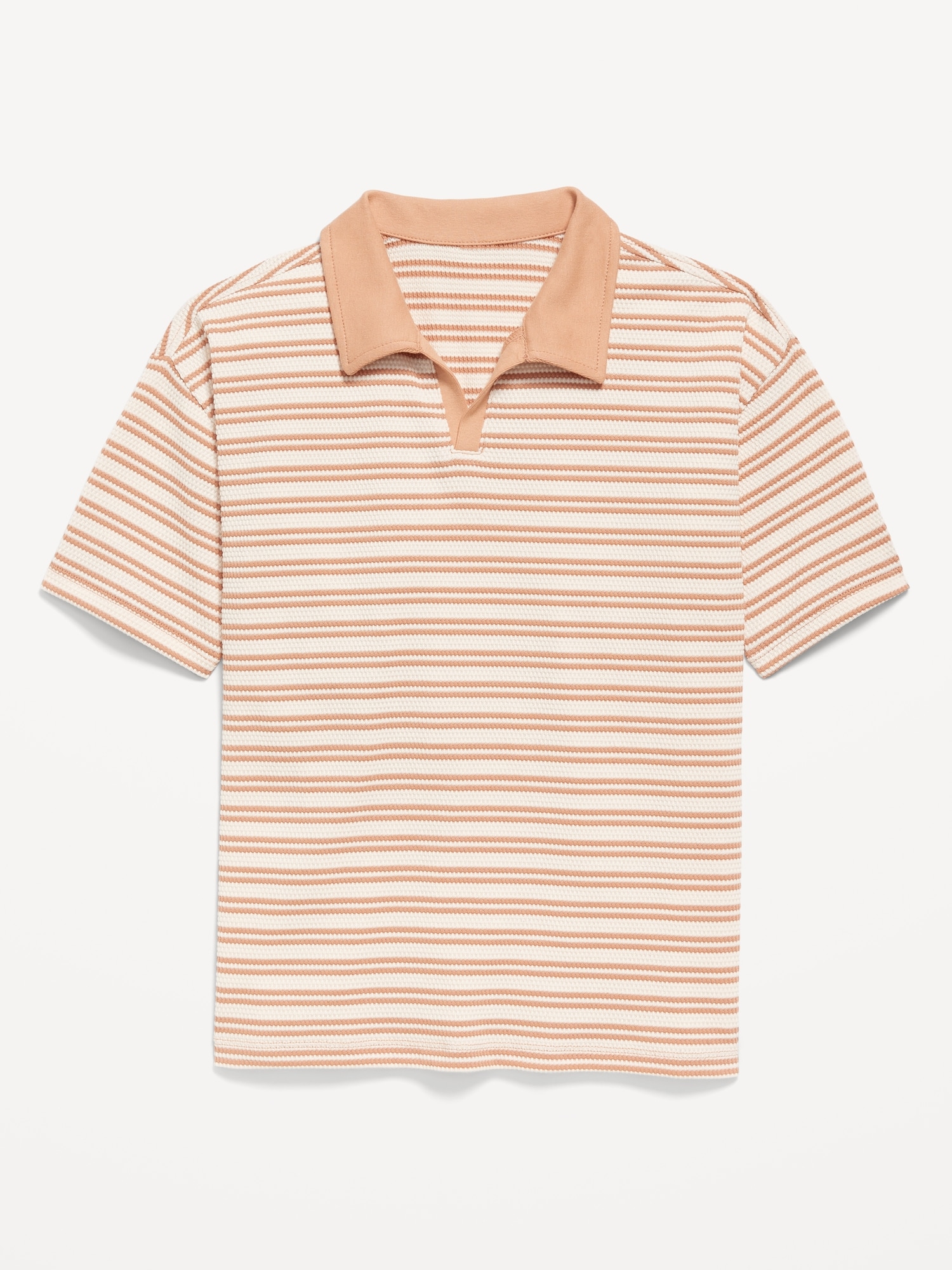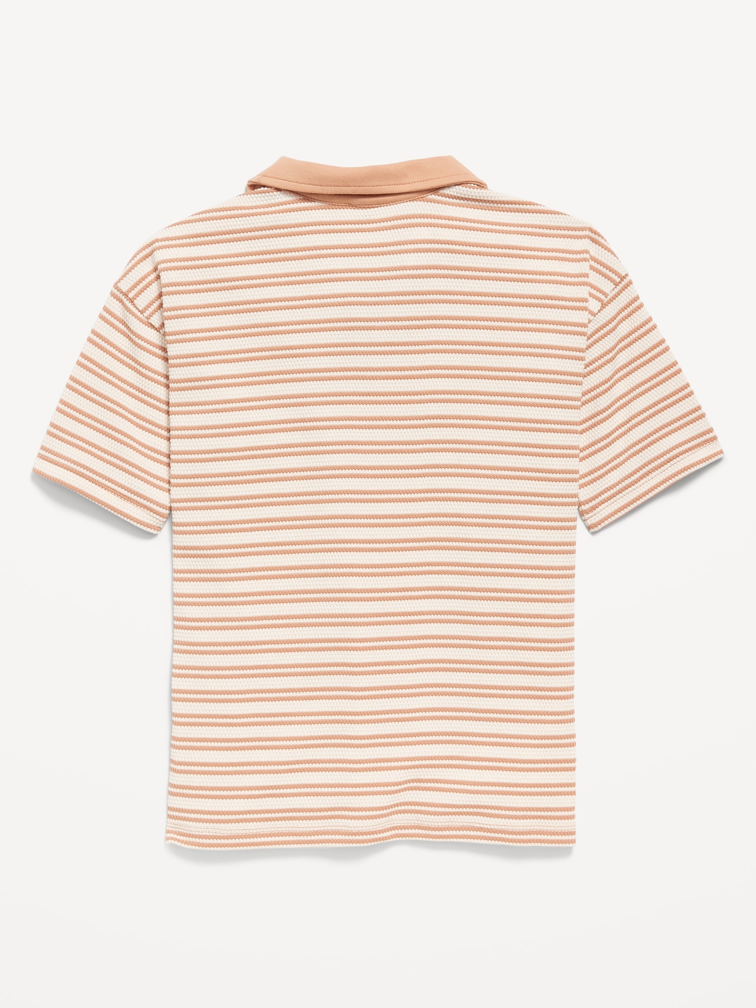 Printed Knitted Collared Shirt for Boys: spread collar, short sleeves, drop shoulders, all-over print, #701915