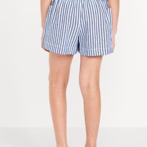 Printed Linen-Blend Utility Shorts for Girls: elasticized waistband, decorative button front, utility patch pockets at each side, all-over print, #767129