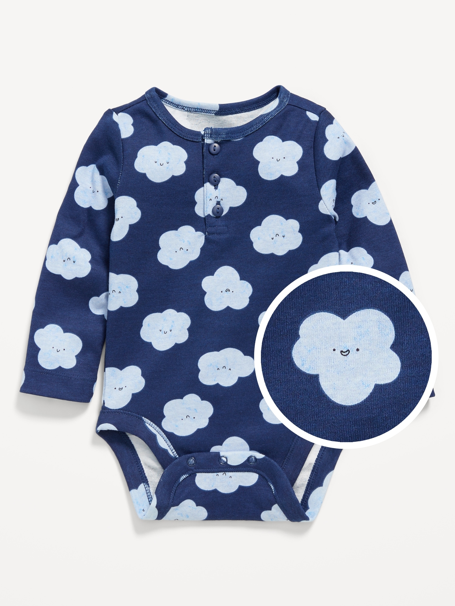 Printed Long-Sleeve Henley Bodysuit for Baby