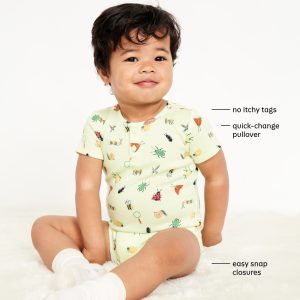 Printed Long-Sleeve Henley Bodysuit for Baby: crew neck, long sleeves, three-button henley placket, snaps along inseam, all-over print, #769971