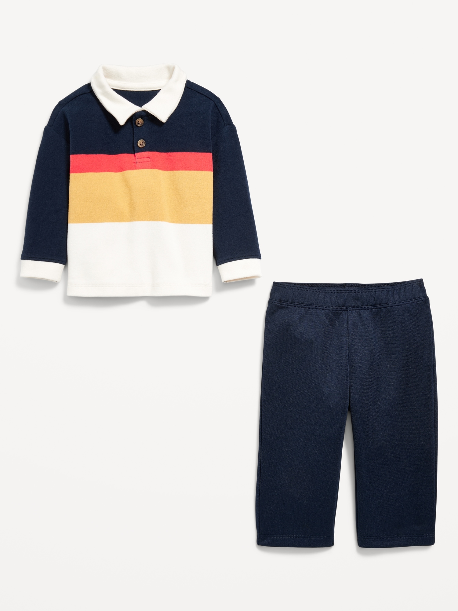 Printed Long-Sleeve Polo Shirt and Pants Set for Baby