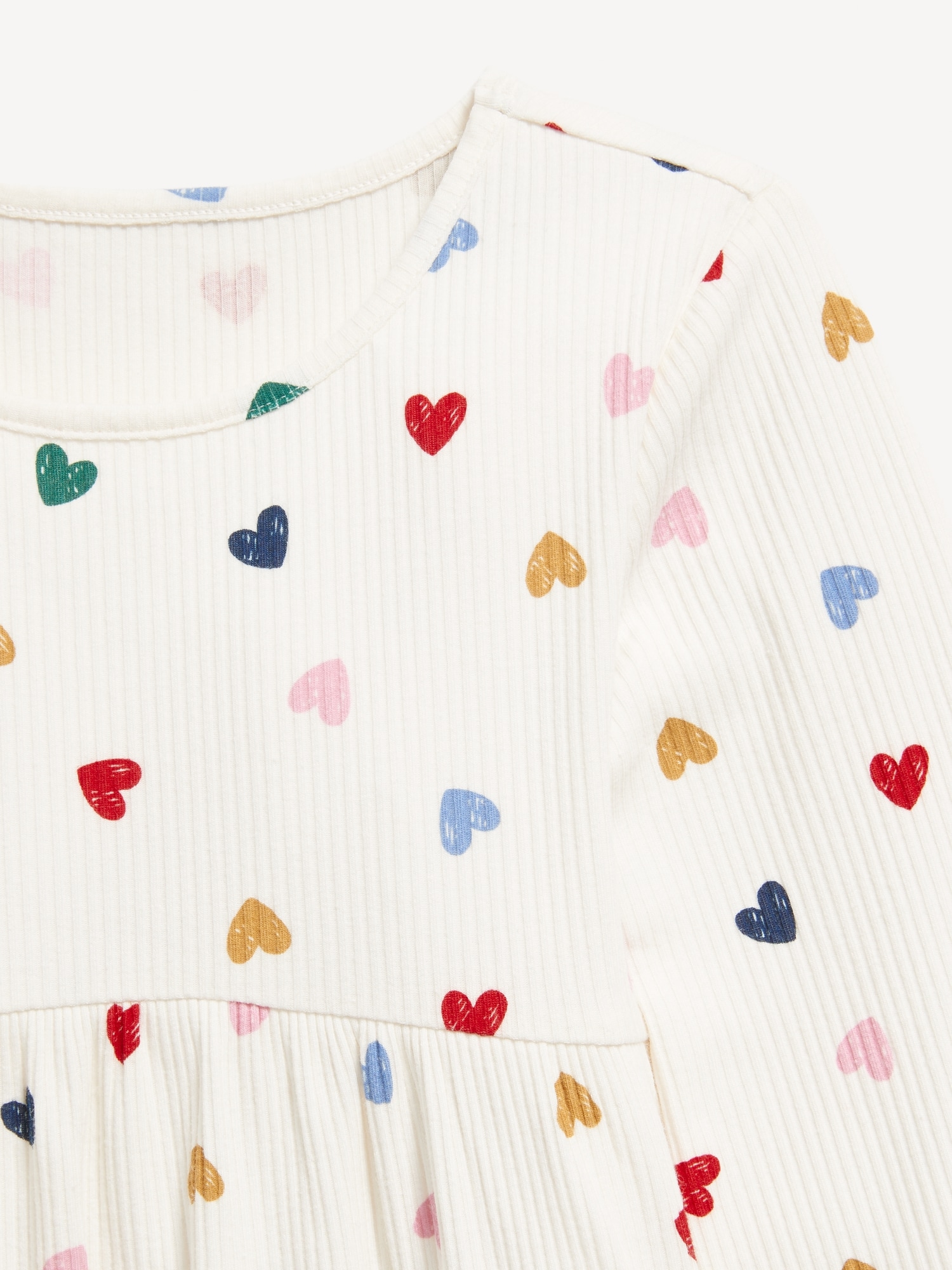 Printed Long-Sleeve Ribbed Dress for Toddler Girls