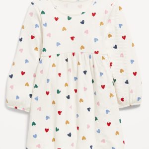 Printed Long-Sleeve Ribbed Dress for Toddler Girls: Mix Match Go Productscoop neck, long puffy sleeves, seamed waist, all-over print, #805579