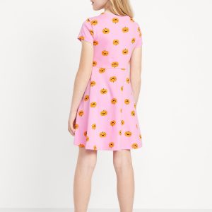 Printed Short-Sleeve Fit and Flare Dress for Girls
