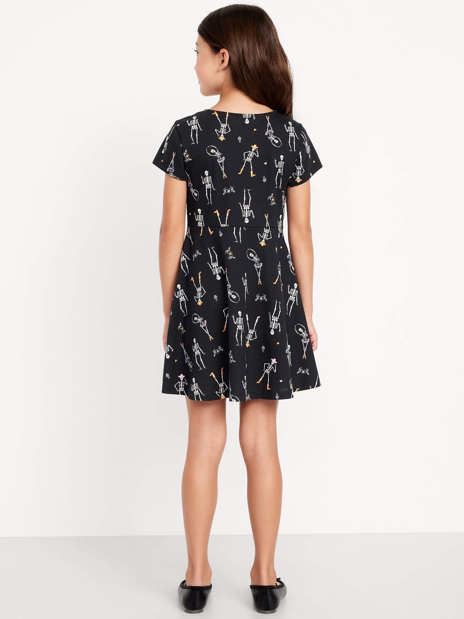Printed Short-Sleeve Fit and Flare Dress for Girls