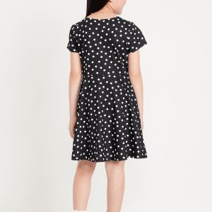 Printed Short-Sleeve Fit and Flare Dress for Girls