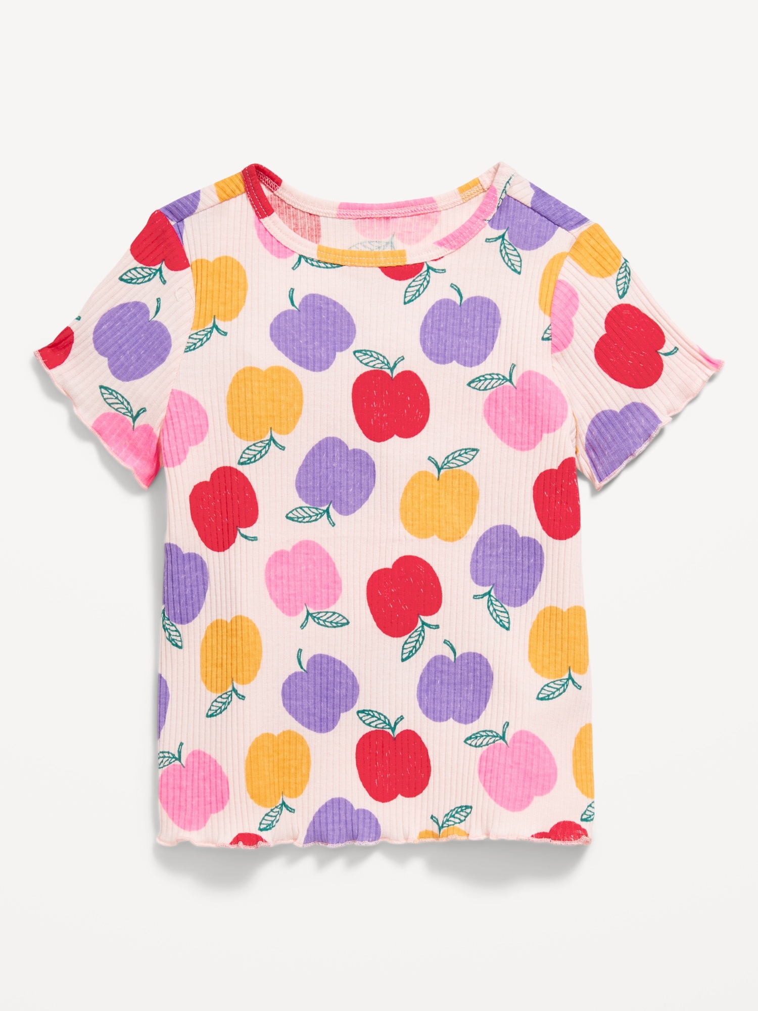 Printed Short-Sleeve Lettuce-Edge T-Shirt for Toddler Girls: Mix Match Go Productrounded neckline, short sleeves, lettuce edge cuffs and hem, all-over print, #690530
