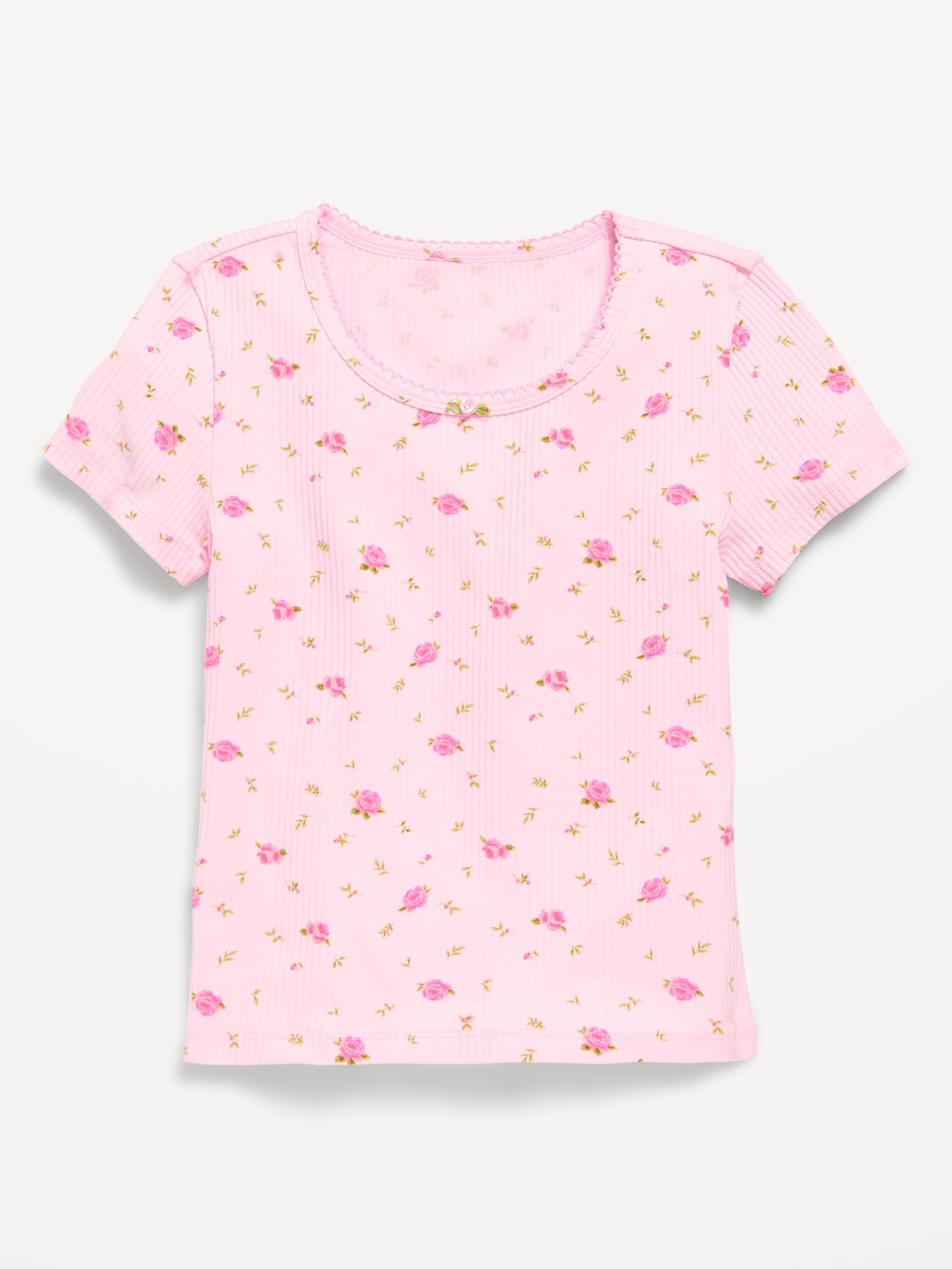 Printed Short-Sleeve Ribbed T-Shirt for Girls