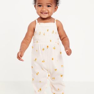 Printed Sleeveless Smocked Jumpsuit for Baby