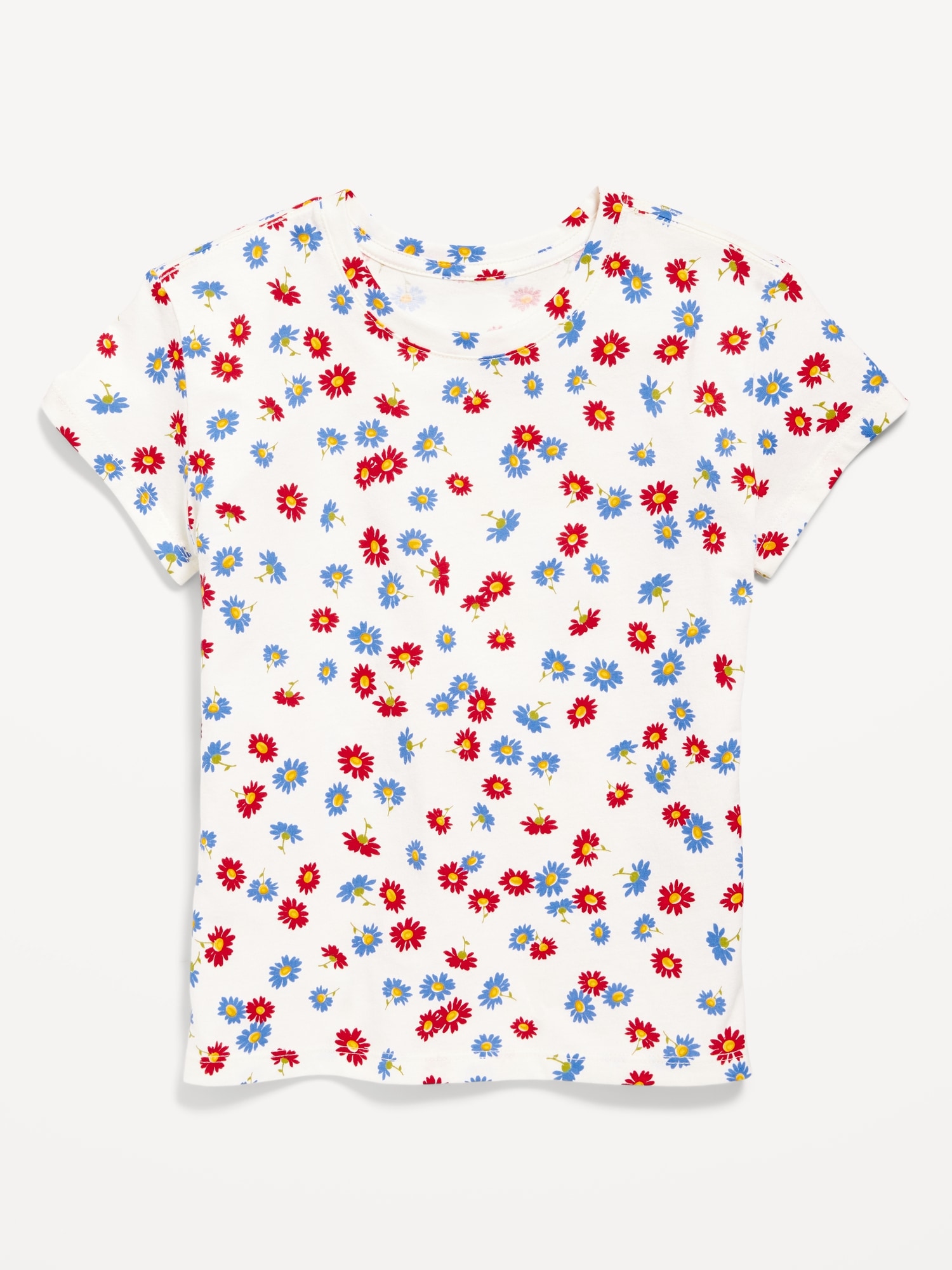 Printed Softest Short-Sleeve T-Shirt for Girls: scoop neck, short sleeves, drop shoulders, all-over print, #766957