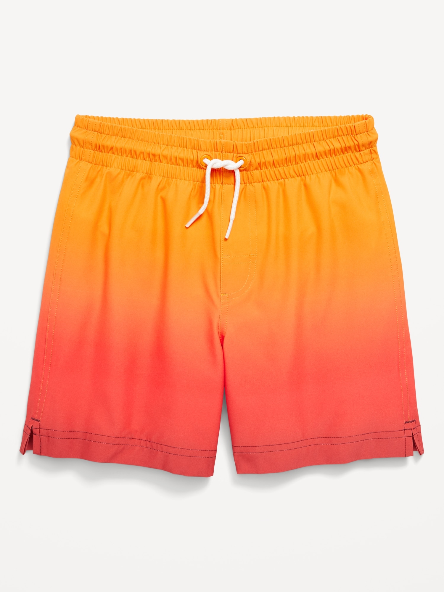 Printed Swim Shorts for Boys: elasticized waistband, adjustable drawstring, faux fly, patch pocket at back right, built-in mesh briefs, #861691