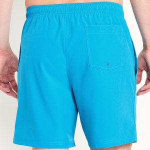 Printed Swim Trunks — 7-inch inseam: elastic-drawstring waistband, on-seam pockets, back patch pocket with grommet drain, built-in mesh briefs, pull-on style, #766290