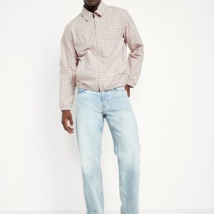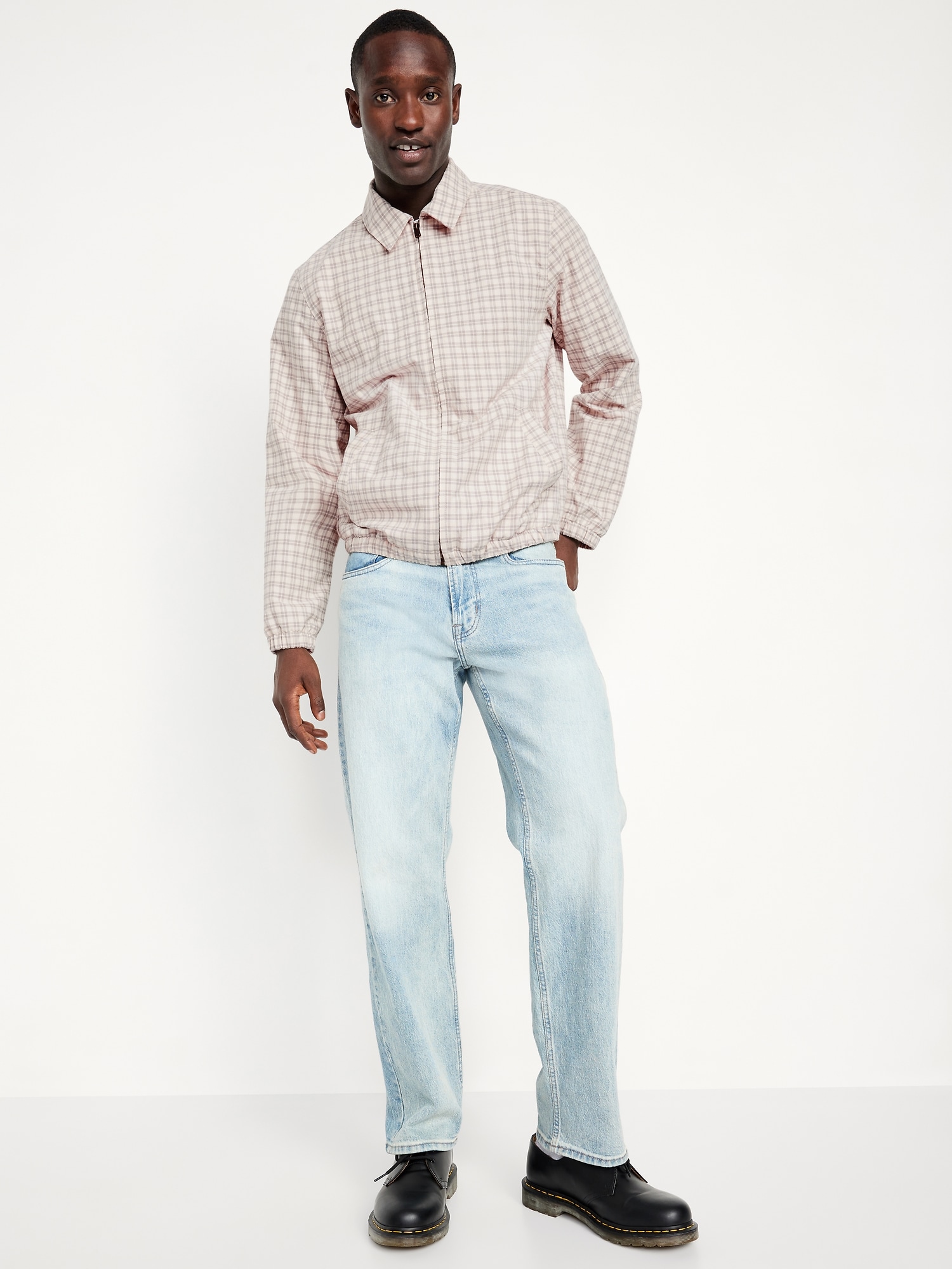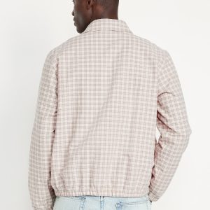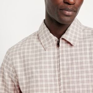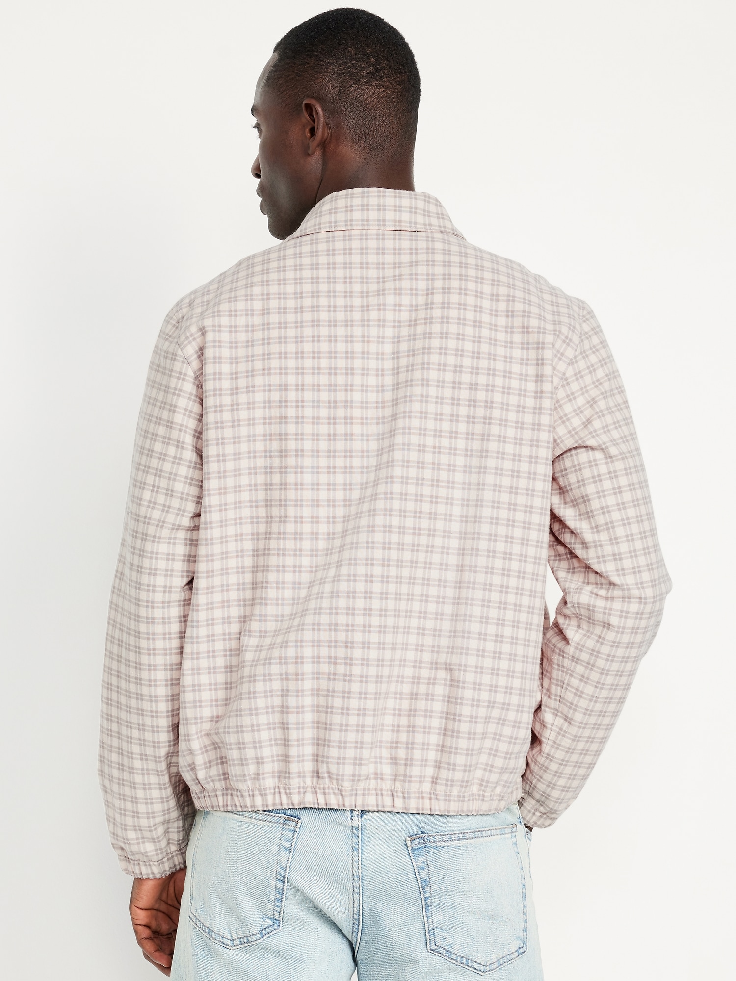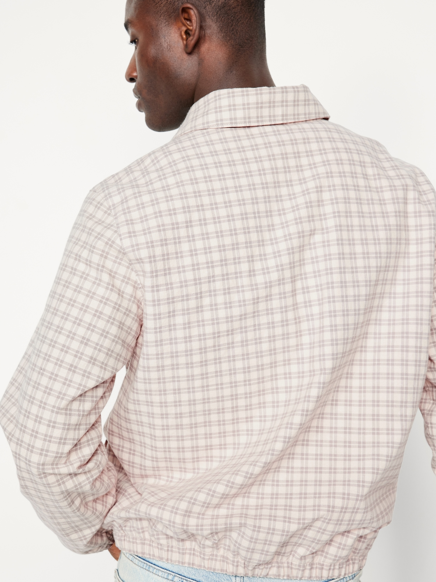 Relaxed Zip Jacket: spread collar, long sleeves, full-zip front, welt pockets, gingham print, elastic cuffs and hem, #686458