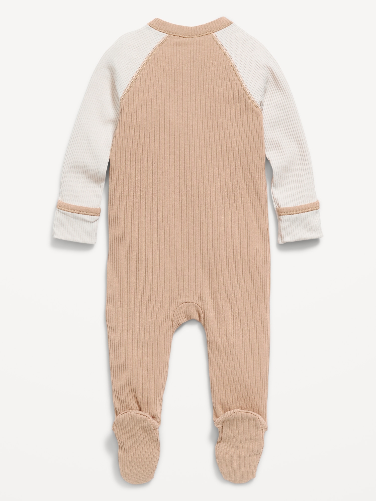 Ribbed 2-Way-Zip Sleep & Play Footed One-Piece for Baby: crew neck, long sleeves, full-length reversible zipper, fold-over mittens at each sleeve, sewn-in feet, #804884