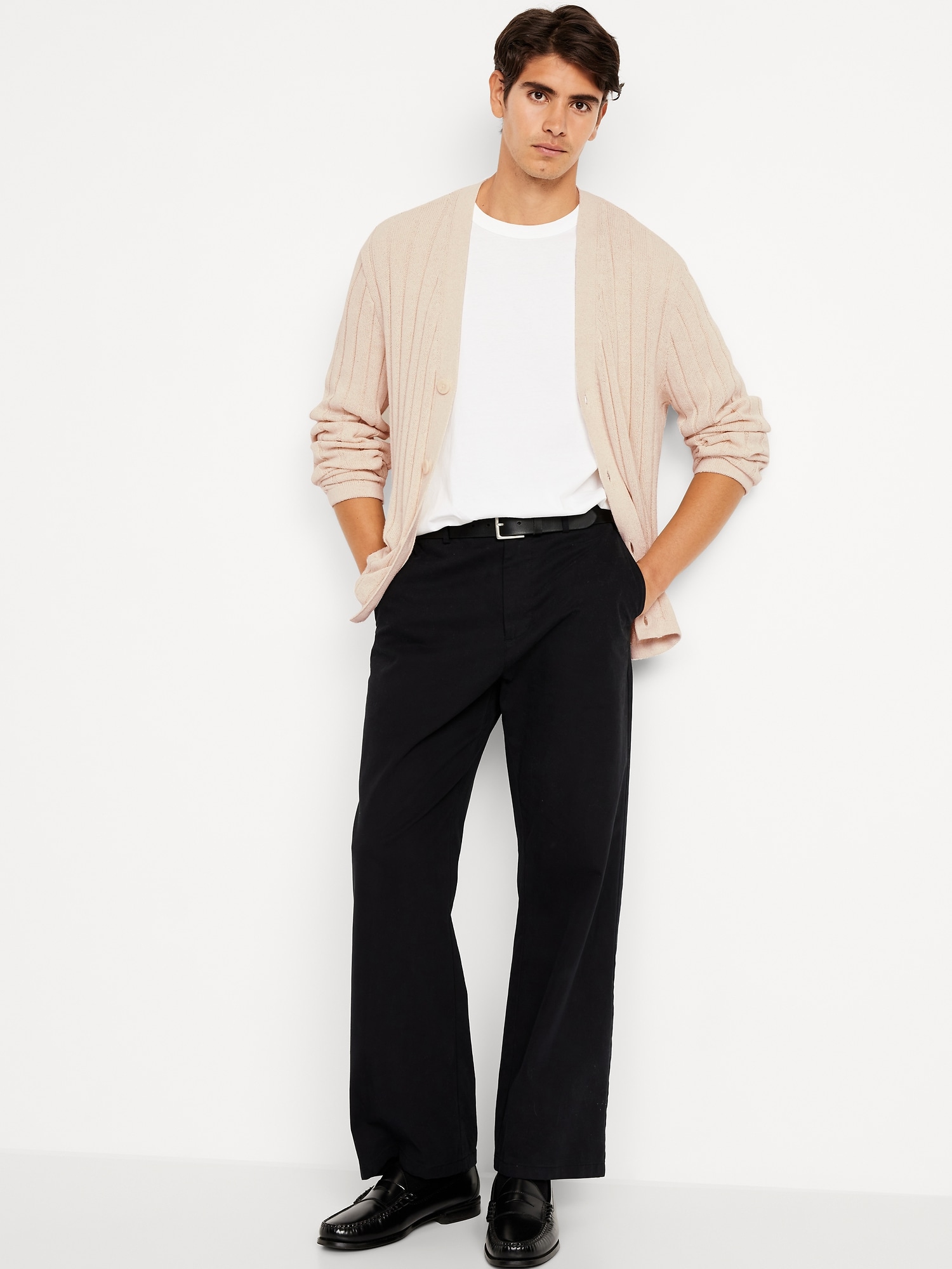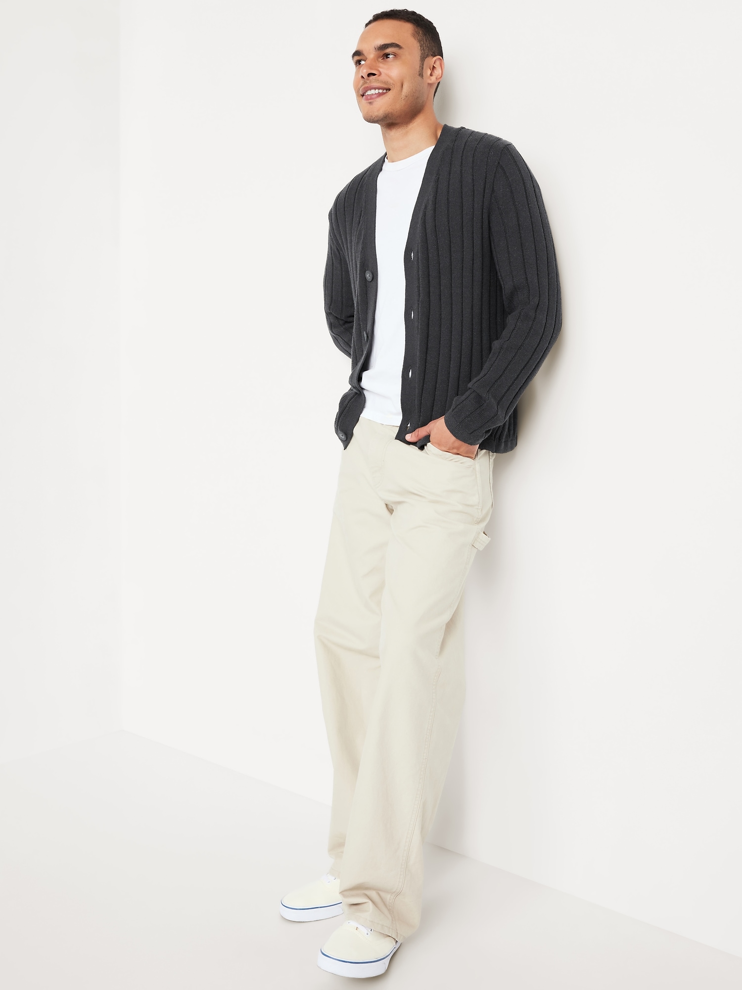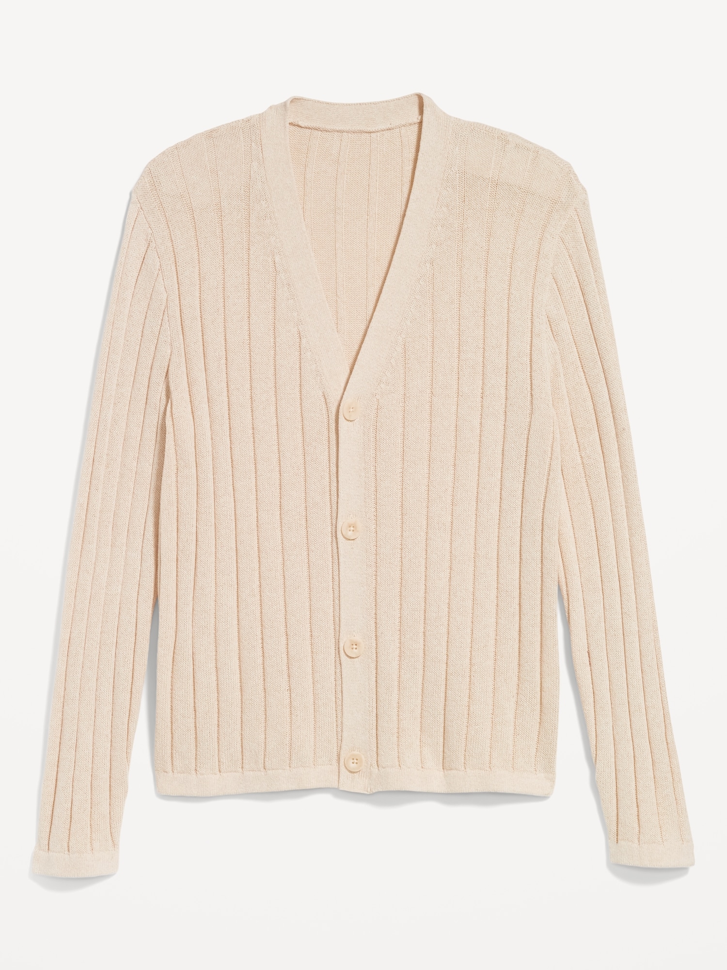 Ribbed Button-Front Cardigan: v-neck, long sleeves, four-button front, #791324