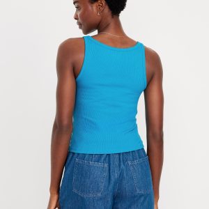 Ribbed Crop Tank Top: scoop neck, wide straps, embroidered trim, #693036