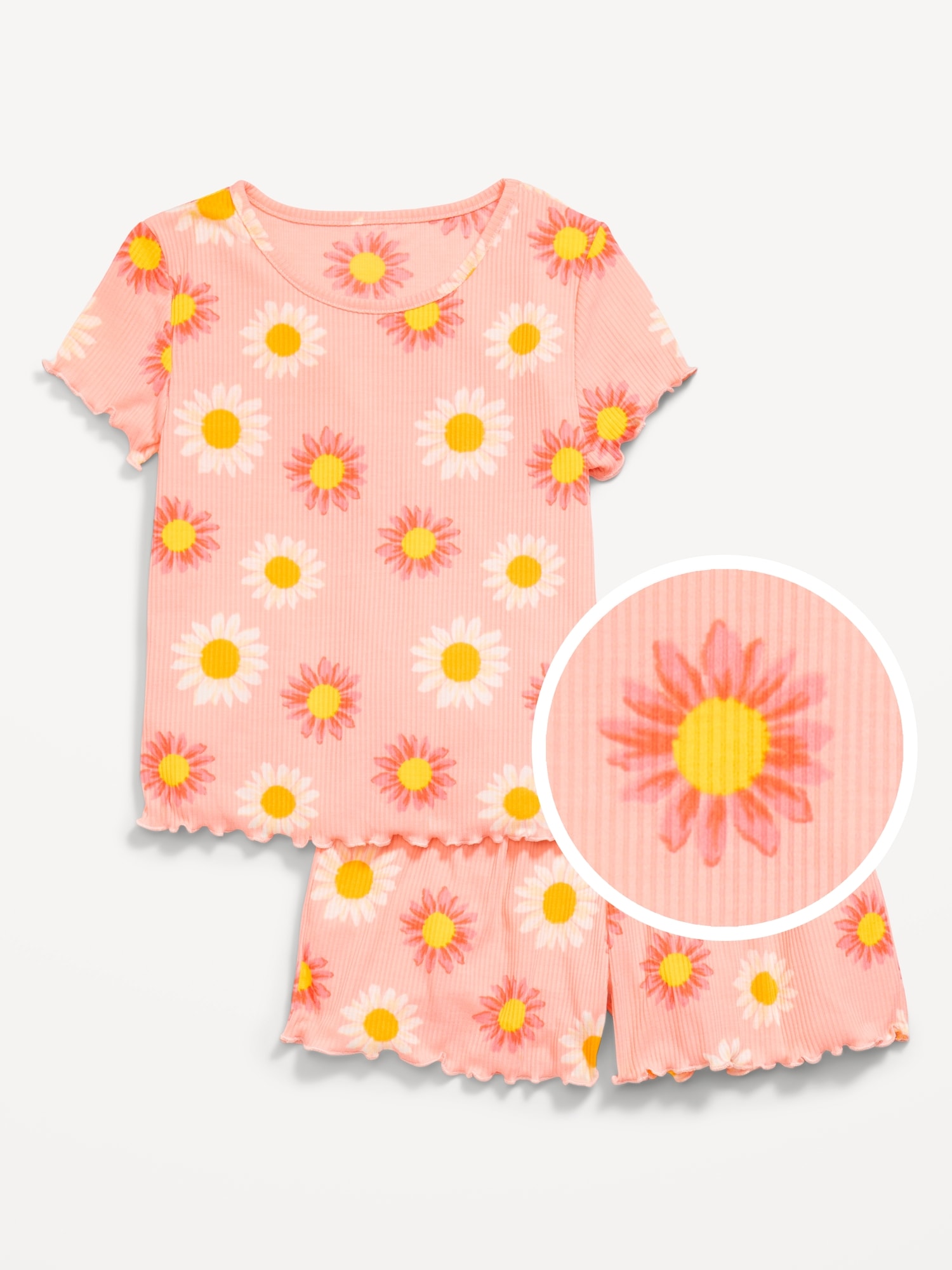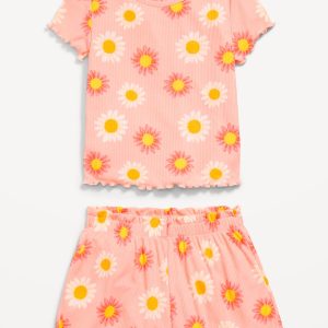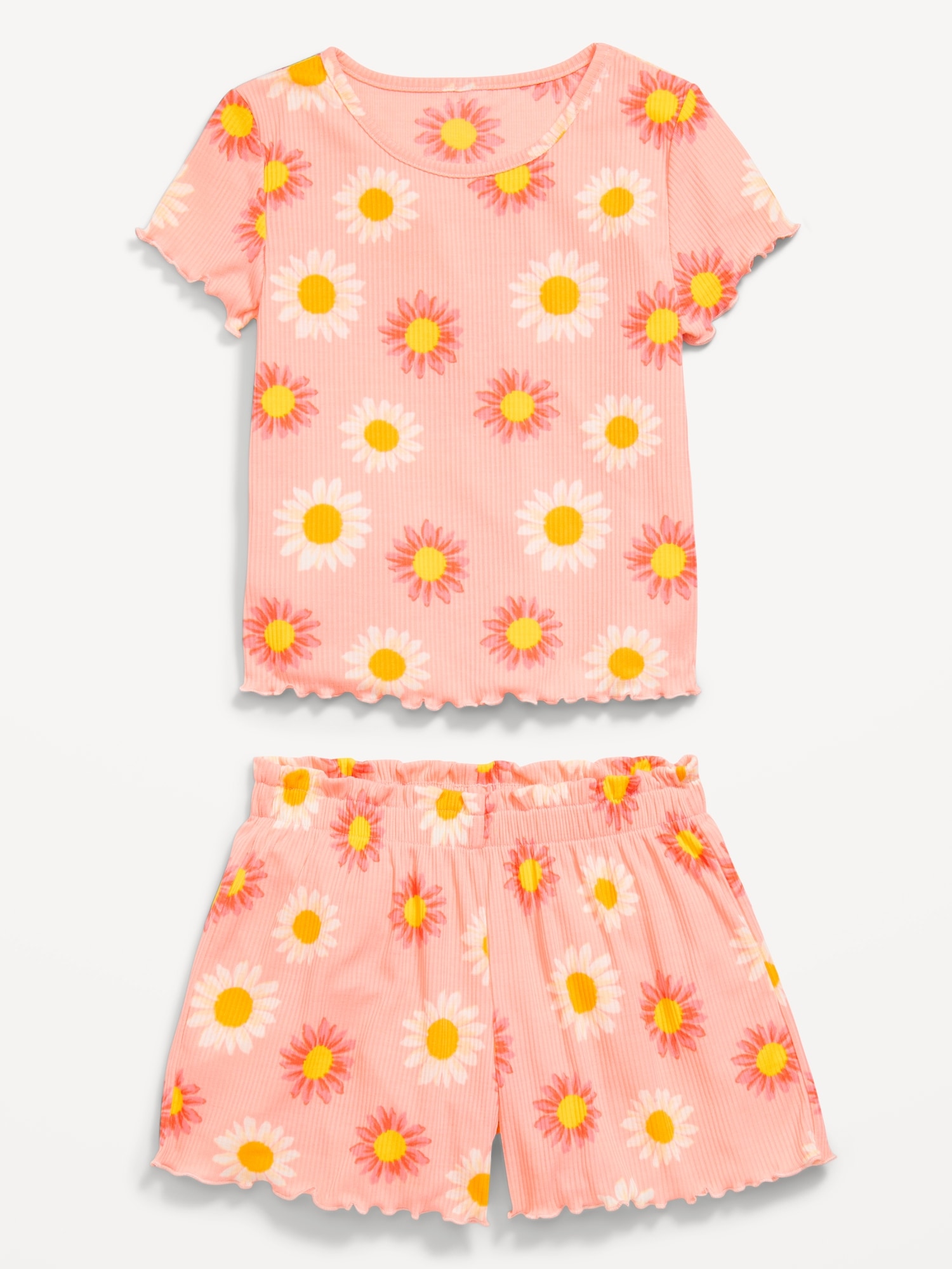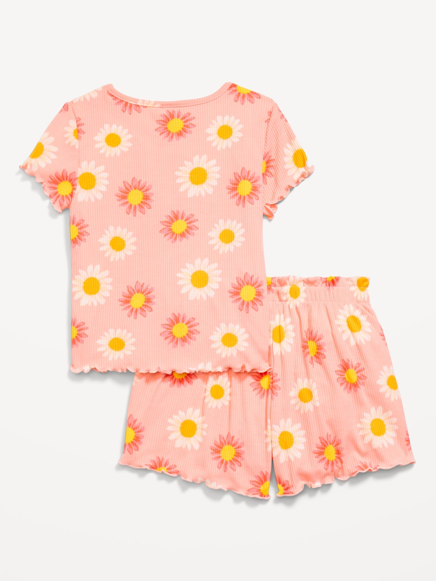 Ribbed Lettuce-Edge Pajama Top and Shorts Set for Girls