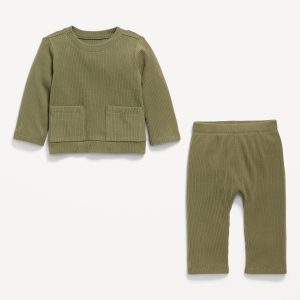 Ribbed Pocket T-Shirt and Pants Set for Baby: crew neck, long sleeves, patch pockets at hem, matching pants, elasticized waistband, #801530