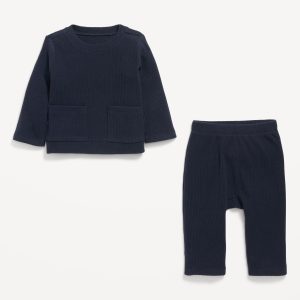 Ribbed Pocket T-Shirt and Pants Set for Baby: crew neck, long sleeves, patch pockets at hem, matching pants, elasticized waistband, #801530