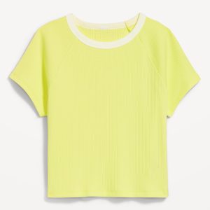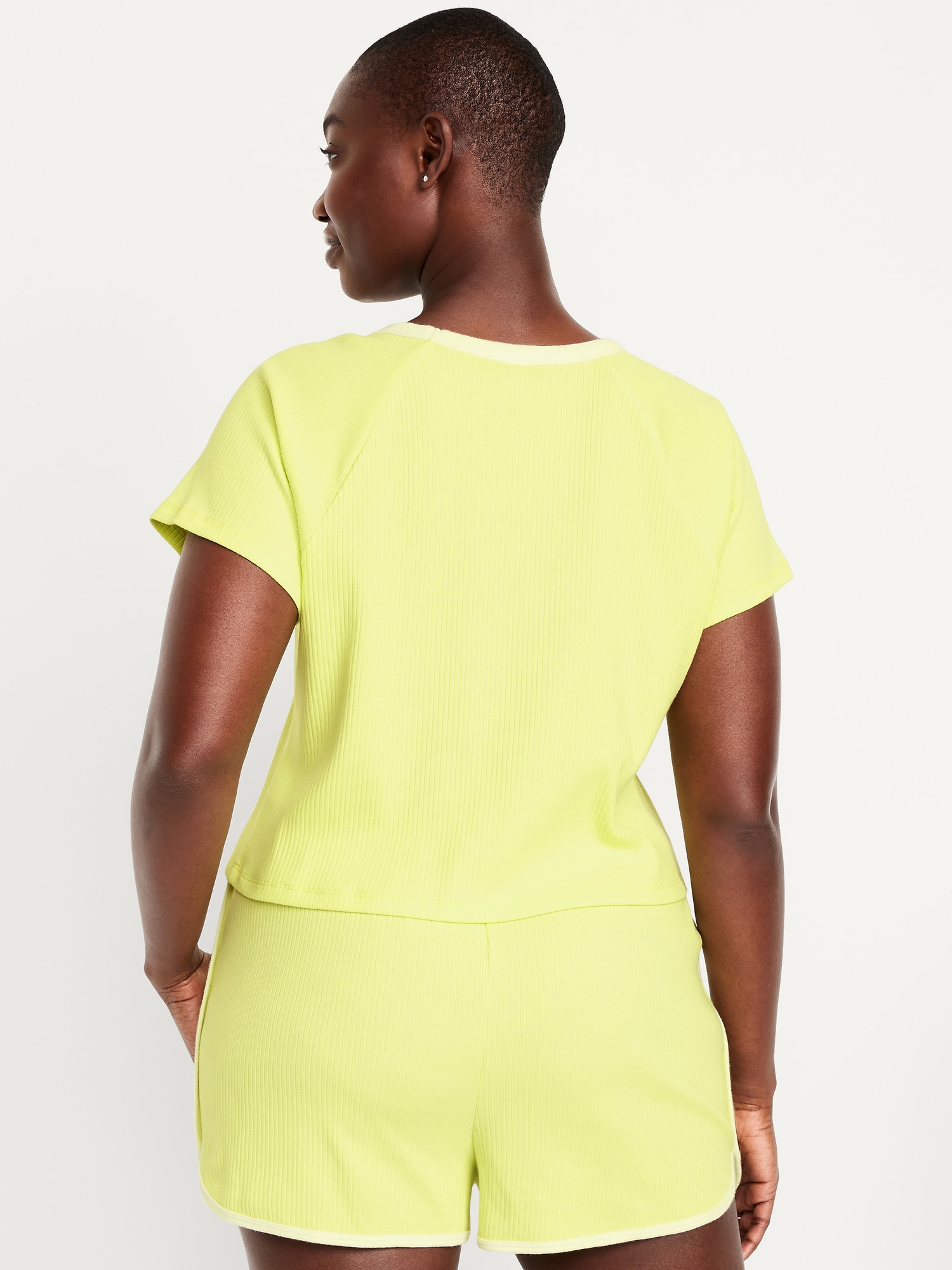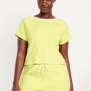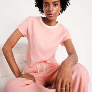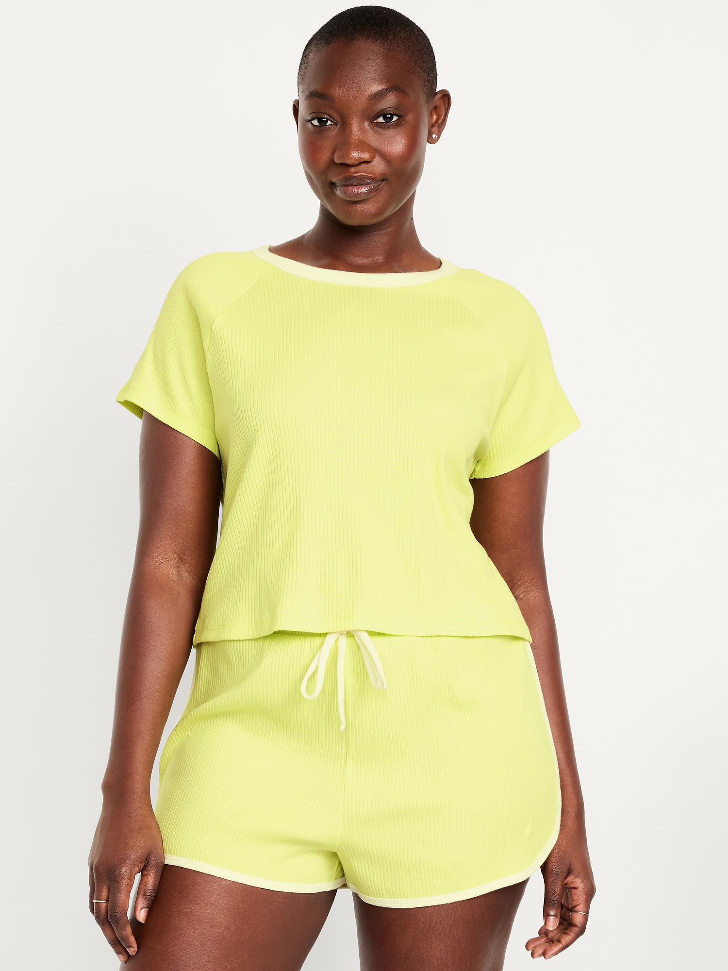 Ribbed Ringer Pajama T-Shirt: crew neck, short raglan sleeves, print varies, #766783