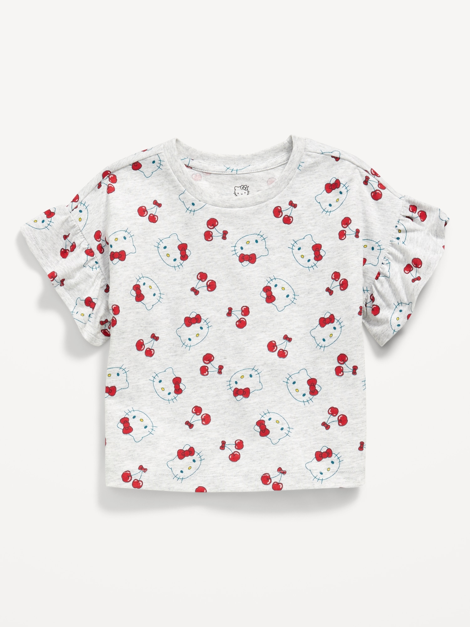Ruffle-Sleeve Licensed Graphic T-Shirt for Toddler Girls: crew neck, short ruffled sleeves, all-over licensed graphic, BLUEY™ and character logo™ and © Ludo Studio. Licensed by BBC Studios Distribution Ltd., © 2025 SANRIO CO. LTD. Used Under License., #762103