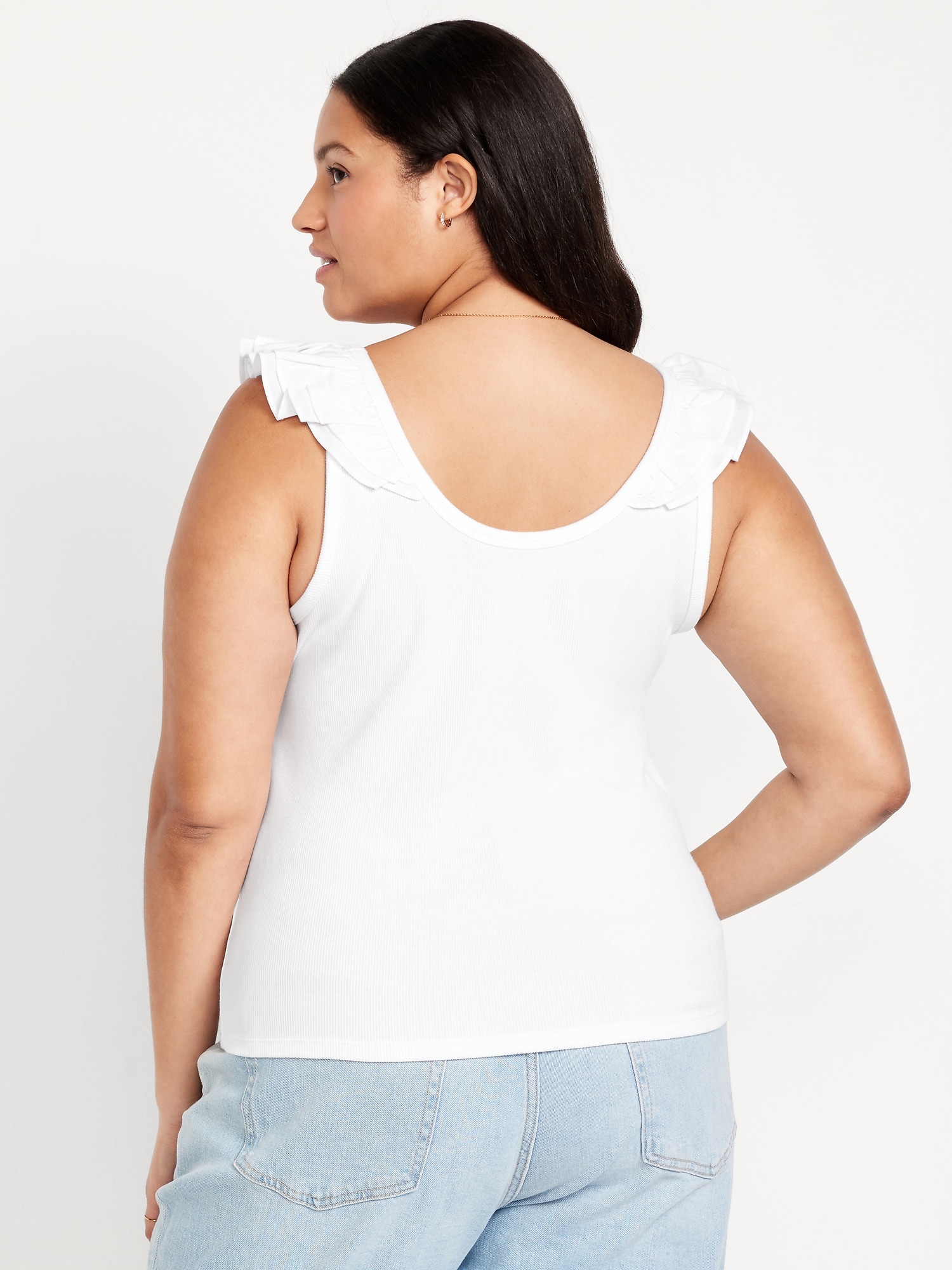 Ruffle-Trim Mixed Material Top: v-neck, ruffled sleeve openings, #686637